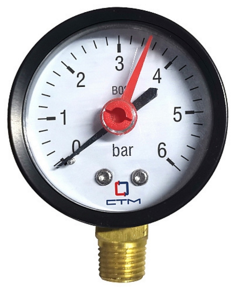 Манометр радиального подключения СТМ 1/4" измерение до 6 бар CPM14R06 редназначен для индикации давления на бытовых системах отопления и водоснабжения.