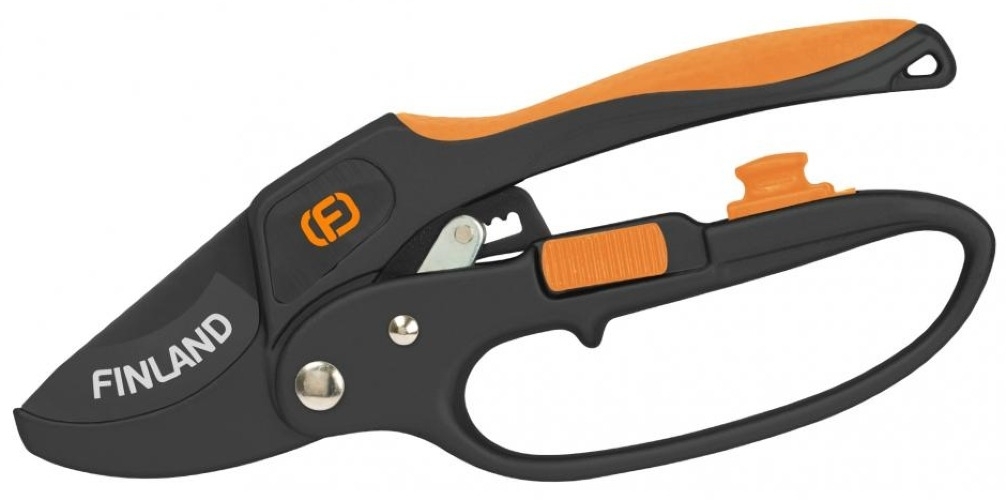 Секатор FINLAND / Финланд профессиональный, плоскостной, с храповым механизмом, из стали, 200мм / садовый инструмент