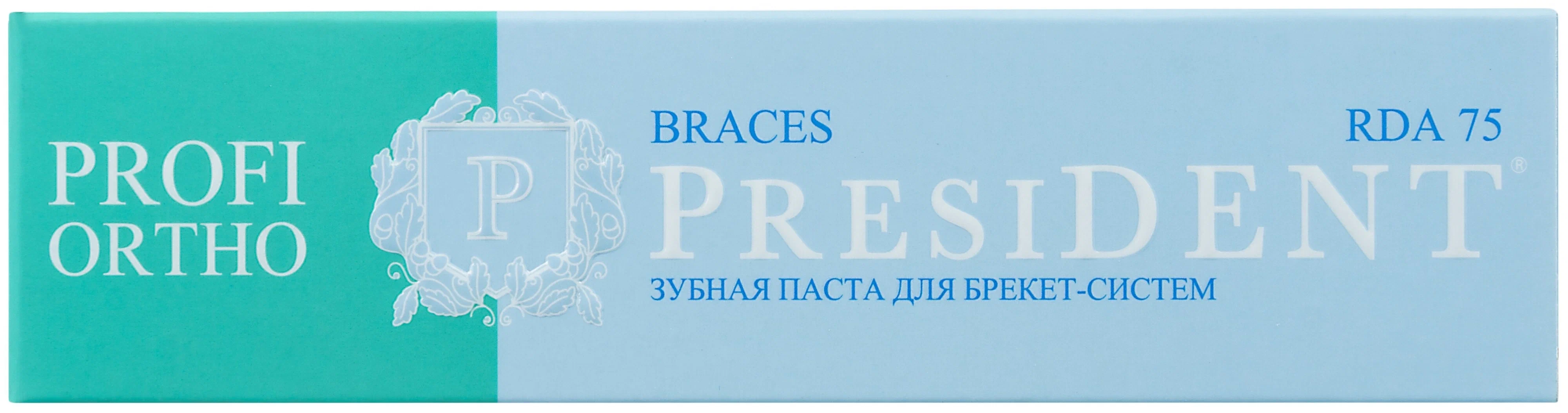 President Profi Ortho Braces Зубная паста предназначена для ежедневной гигиены полости рта с целью обеспечения длительной защиты от кариеса и укрепления зубной эмали.