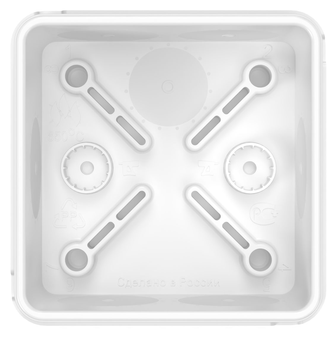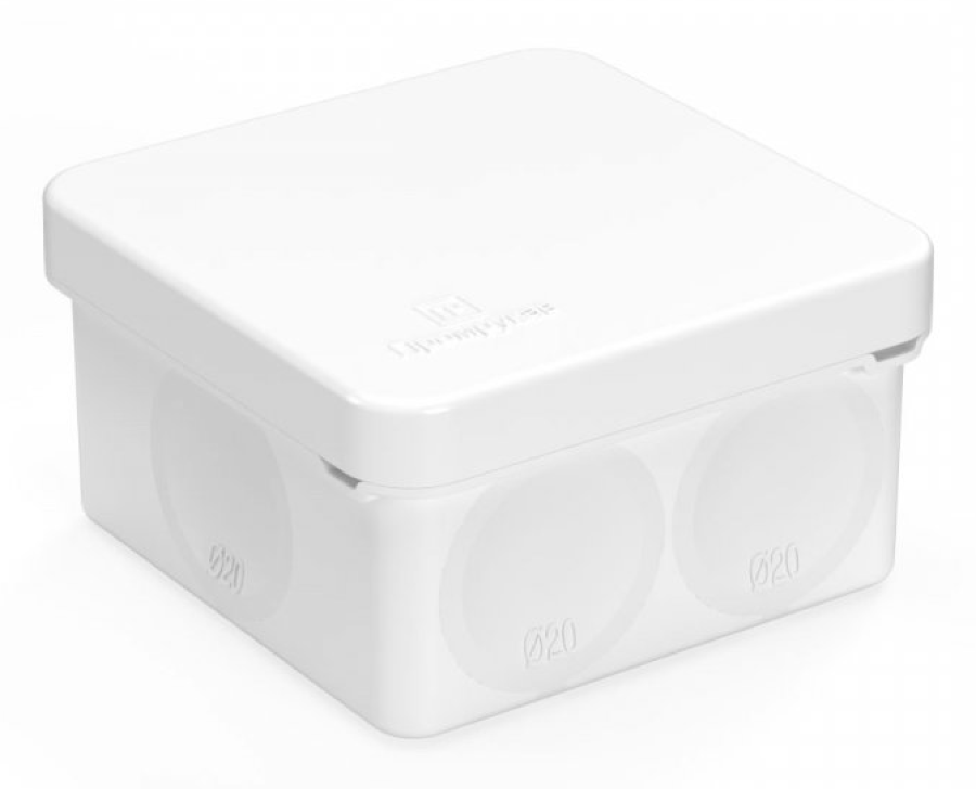 Распаячная коробка Промрукав имеет интересный дизайн, выполнена в белом цвете. Она прекрасно впишется в любой интерьер и скроет неприглядные стыки.
