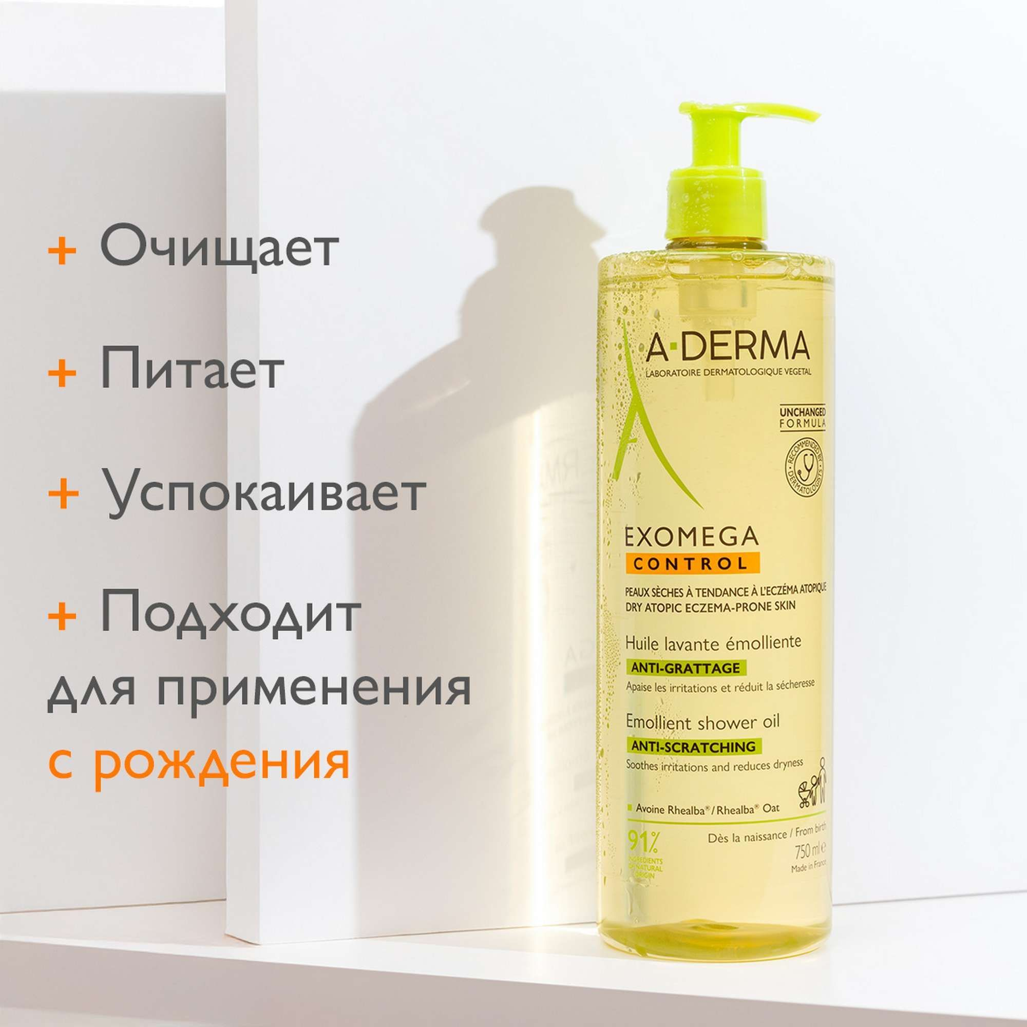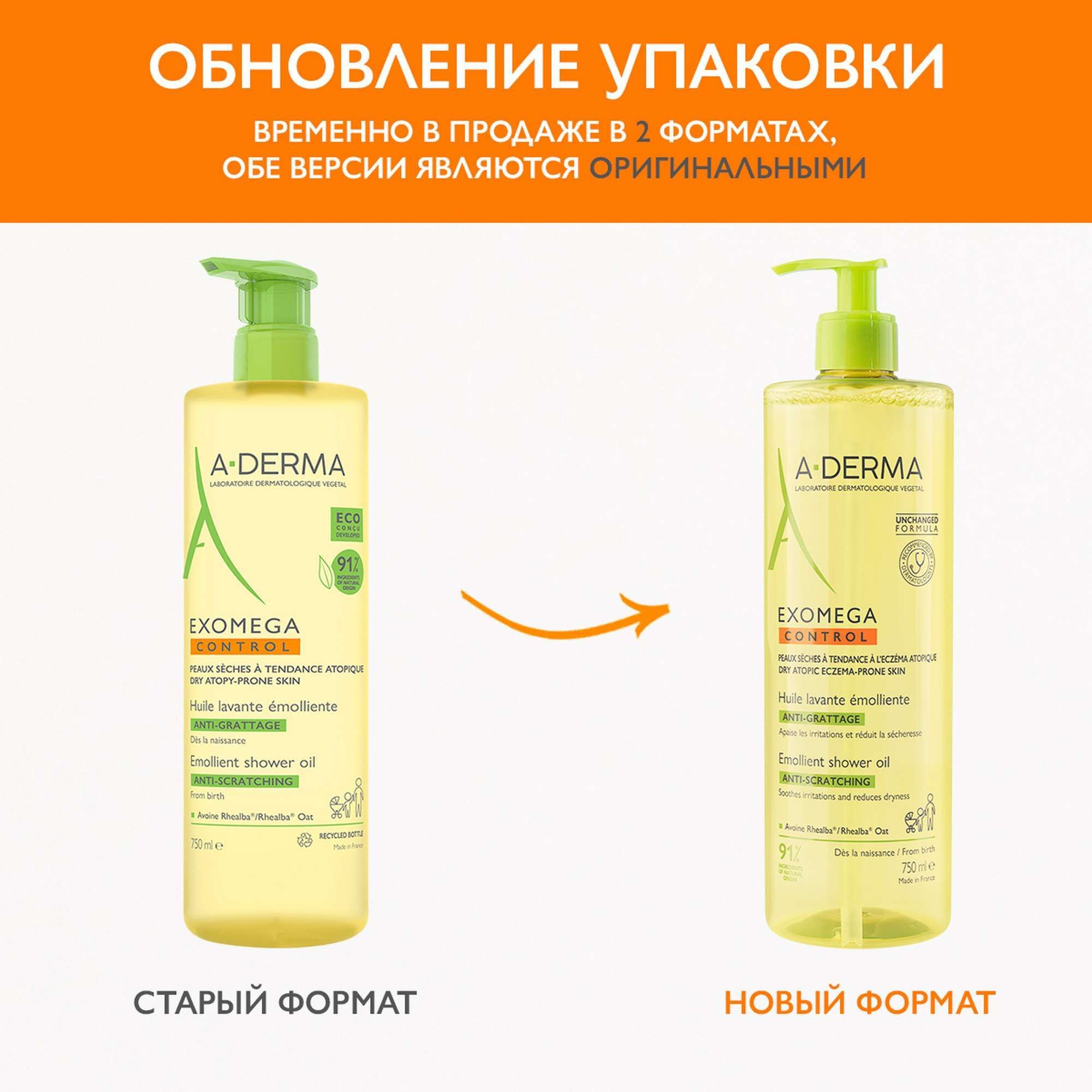 A-Derma / А-Дерма Exomega Control Масло косметическое для душа смягчающее для ухода за сухой кожей, 750мл / уходовая косметика