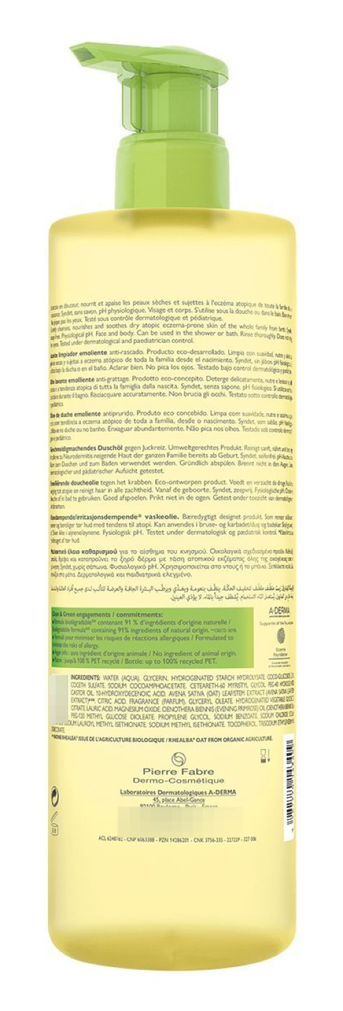 A-Derma Exomega Control Смягчающее масло для душаДеликатное средство для очищения сухой, склонной к атопии кожи для всей семьи: младенцы, дети, взрослые. Смягчающее масло очень нежно очищает, увлажняет и смягчает сухую, склонную к атопии и зуду кожу младенцев, детей и взрослых благодаря содержанию в составе экстракта ростков овса Реальба и Омега 6 незаменимых жирных кислот. Уникальный запатентованный ингредиент — экстракт ростков овса Реальба эффективно успокаивает и снимает раздражение с кожи. Реальба — это особый сорт овса, известен своими уникальными свойствами. Реальба обеспечивает эффективную защиту кожи и высокую переносимость благодаря богатству активными ингредиентами. Органическое происхождение ингредиента Реальба гарантирует отсутствие пестицидов, фунгицидов и ГМО, бережный уход за кожей. Биоразлагаемая формула.