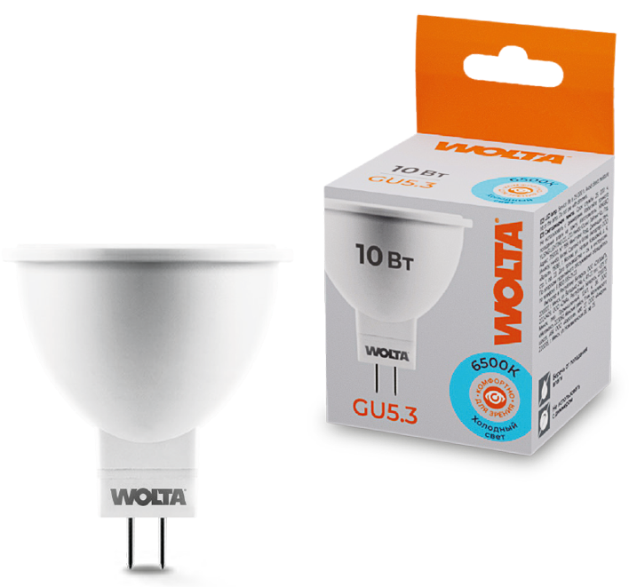 Лампочка светодиодная Wolta / Вольта 25WMR16 для спотов 51мм, софит, GU5.3, 6500К, 825Лм, холодный свет, 220В, 10Вт / освещение