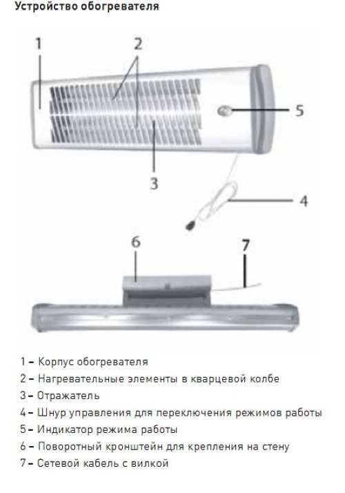 Обогреватель реализуется в индивидуальной упаковке. Выполнен в корпусе из металла. Цвет — серый. Размер — 540х130х115 мм.