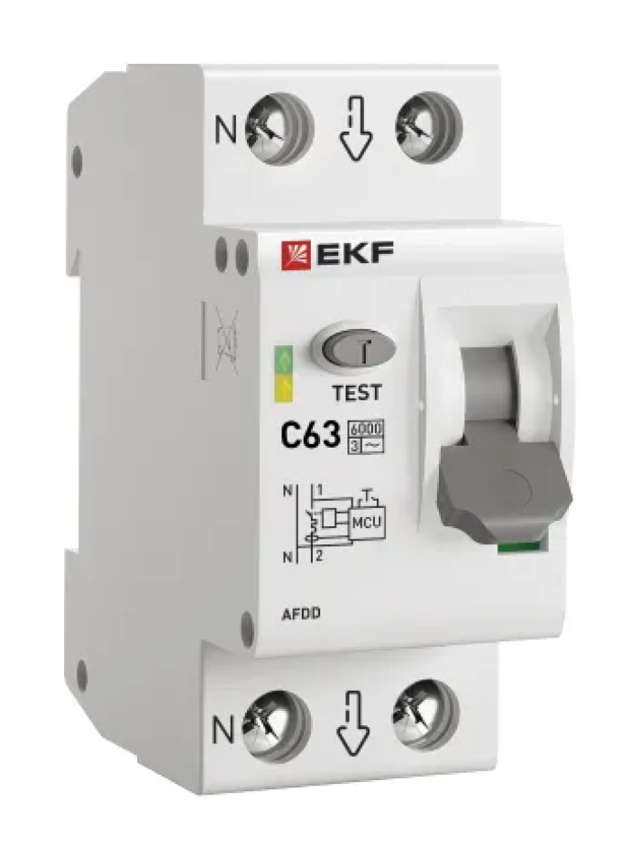 - Устройство защиты от дугового пробоя EKF PROxima c автоматическим выключателем, двухполюсное, в пластиковом корпусе, серый, 63, 6кА 230В, IP20 - 1шт.
