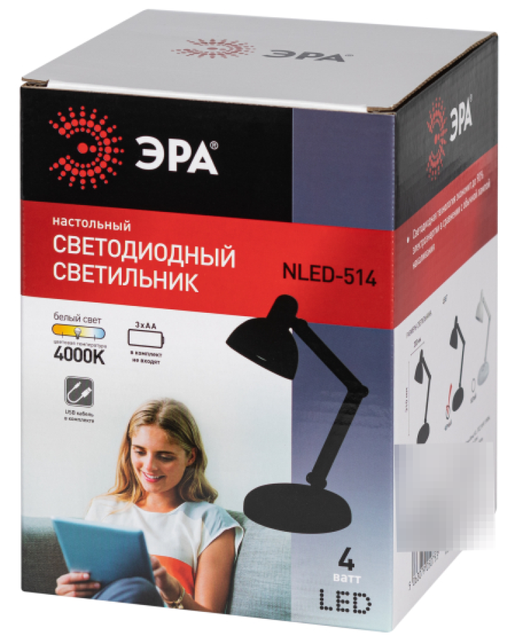 Основные характеристики лампы настольной ЭРА NLED-514-4W-BK: