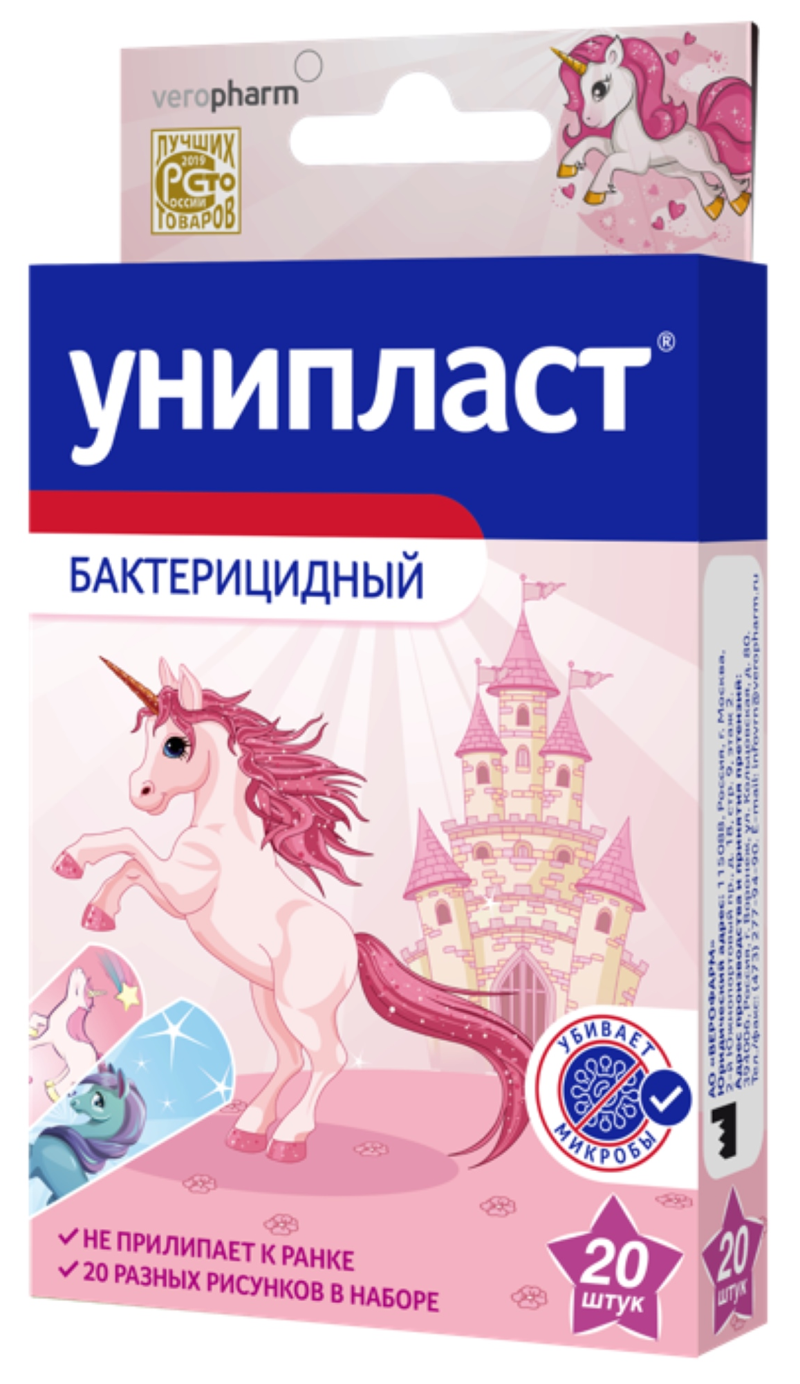 Унипласт Пластырь бактерицидный детский с рисунком на основе пленки, набор, в упаковке 20шт. / лейкопластырь