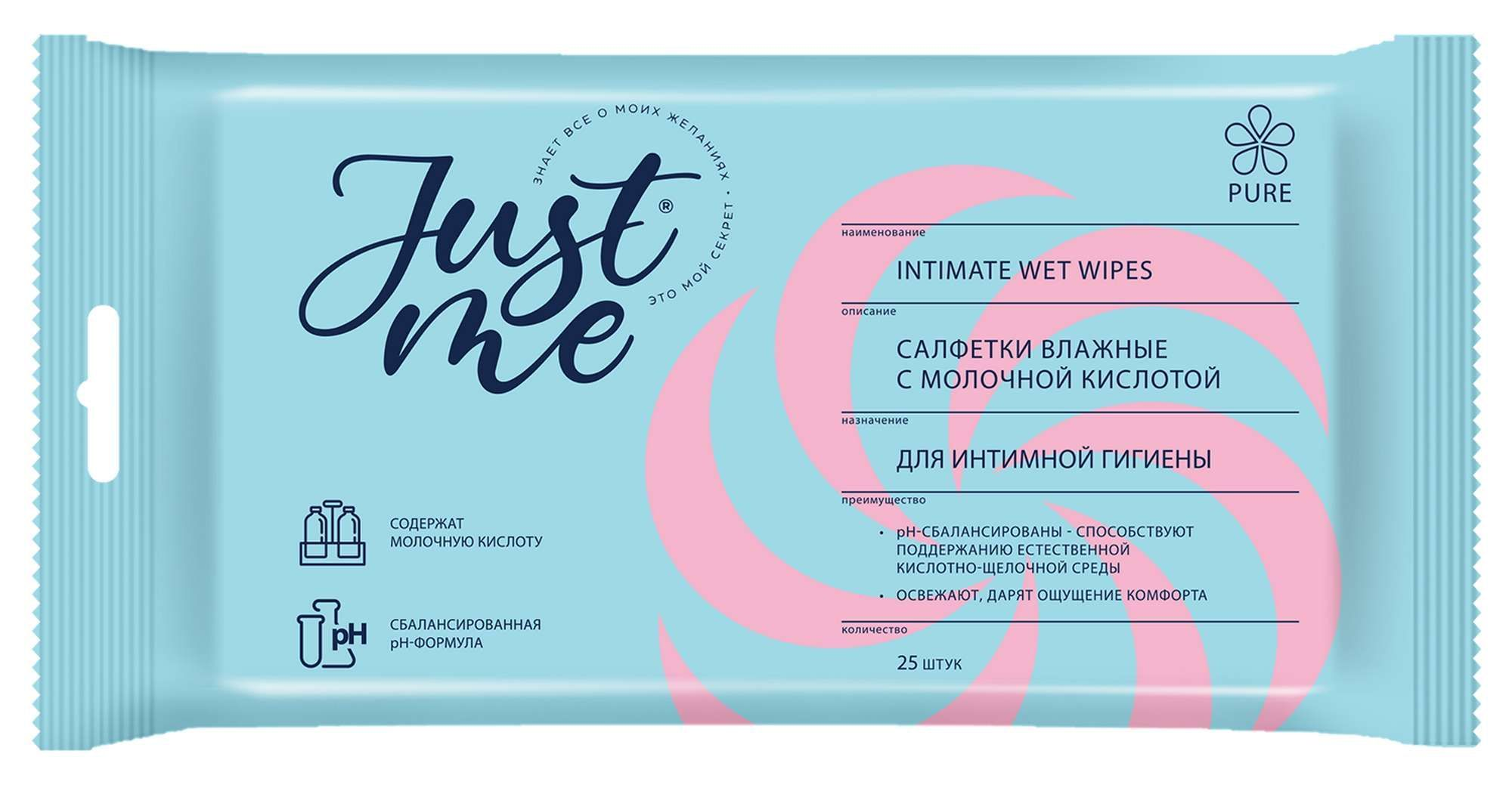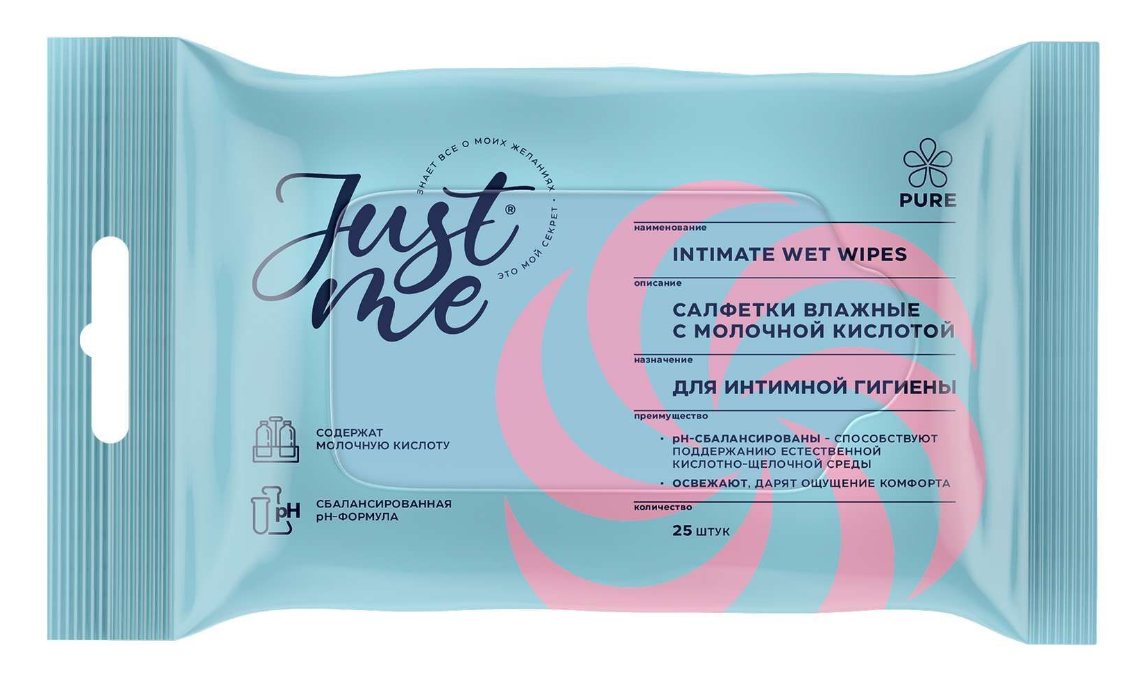 Just me влажные Салфетки для интимной гигиены подходят для ежедневного ухода.