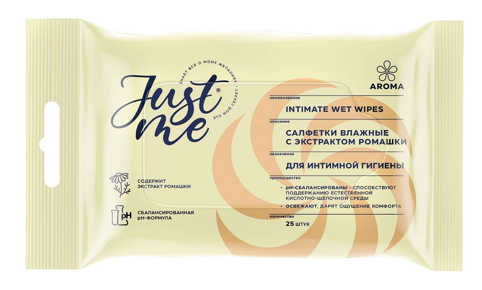 Just me влажные Салфетки для интимной гигиены подходят для ежедневного ухода.