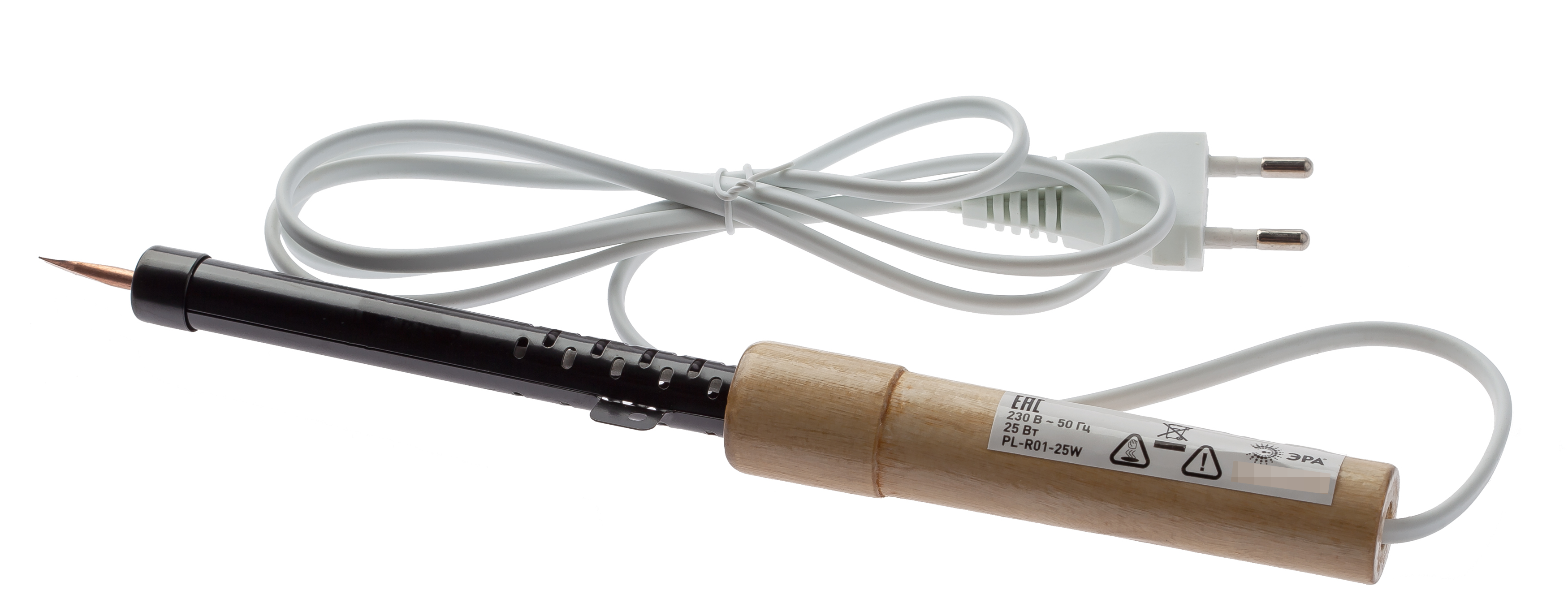 - Паяльник электрический ЭРА PL-R01-25W ЭПСН с прямым клином и деревянной рукояткой, 25Вт 230В, нагрев за 540с, Б0046951 - 1шт.