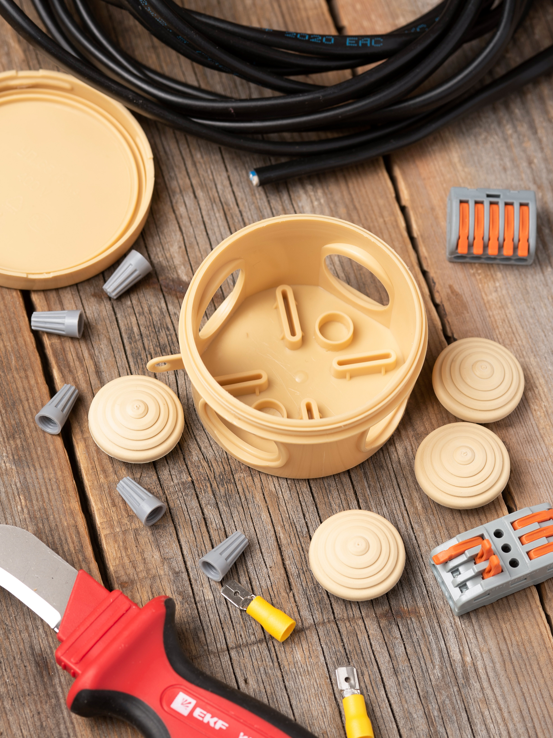 Помимо того, что самая важная функция монтажных коробок заключается в защите соединений жил кабелей от внешних воздействий, монтажные коробки применяют для создания эстетического вида интерьеров и фасадов.