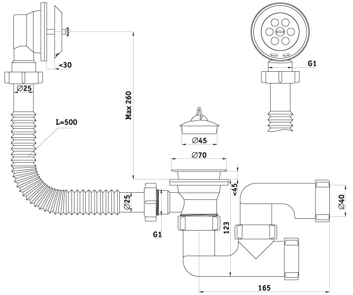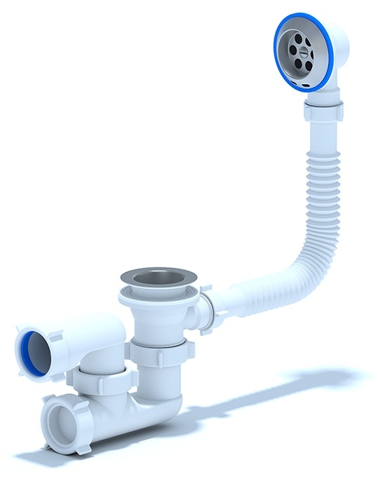 — Для ванн с отверстием слива Ø50 мм и отверстием перелива от Ø36 до 63 мм (стандартное отверстие 50 мм).