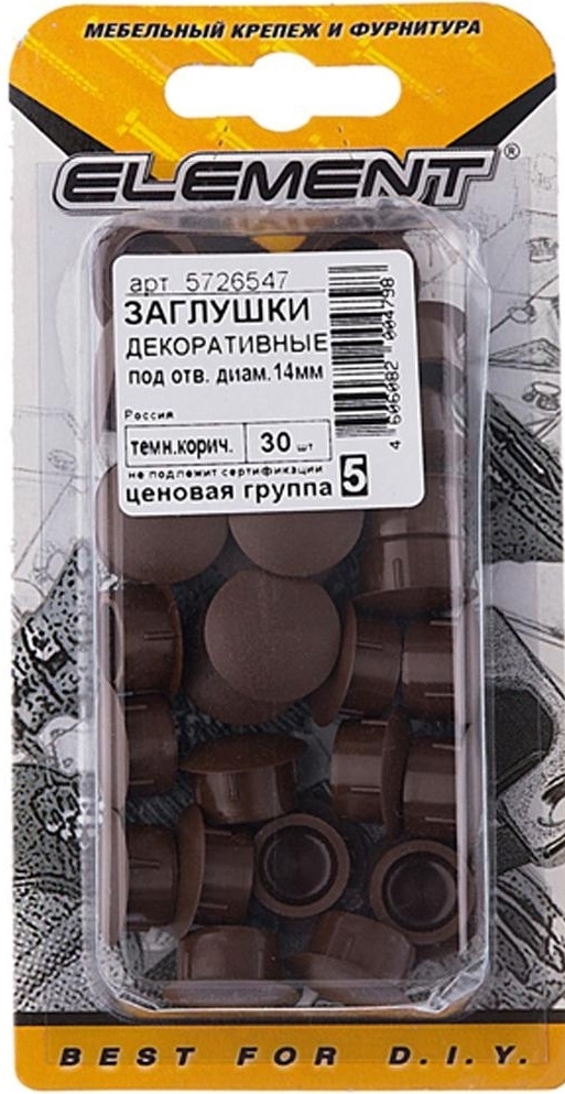 Заглушка декоративная Element / Элемент для закрытия головок шурупов и винтов, пластиковая, темно-коричневая, 14мм, 30шт. / строительство и ремонт