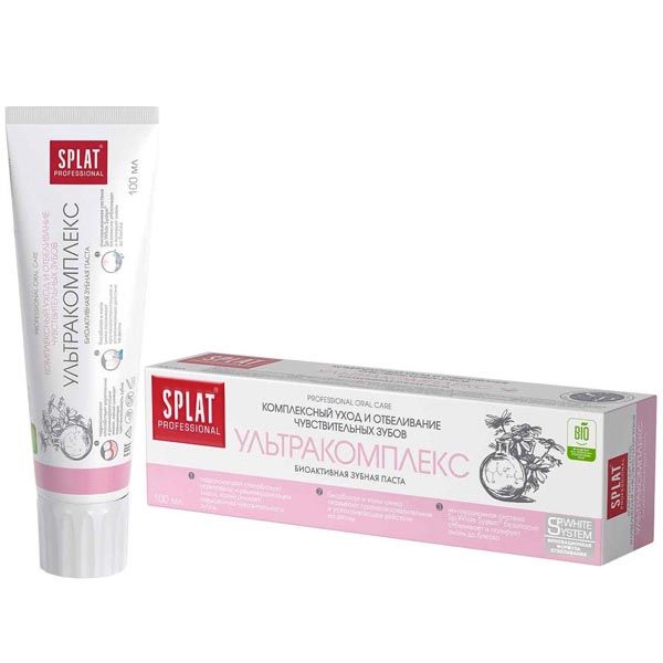 Зубная паста Splat Ультракомплекс от кариеса с высокоэффективным аминофторидом укрепляет эмаль и защищает зубы от кариеса.