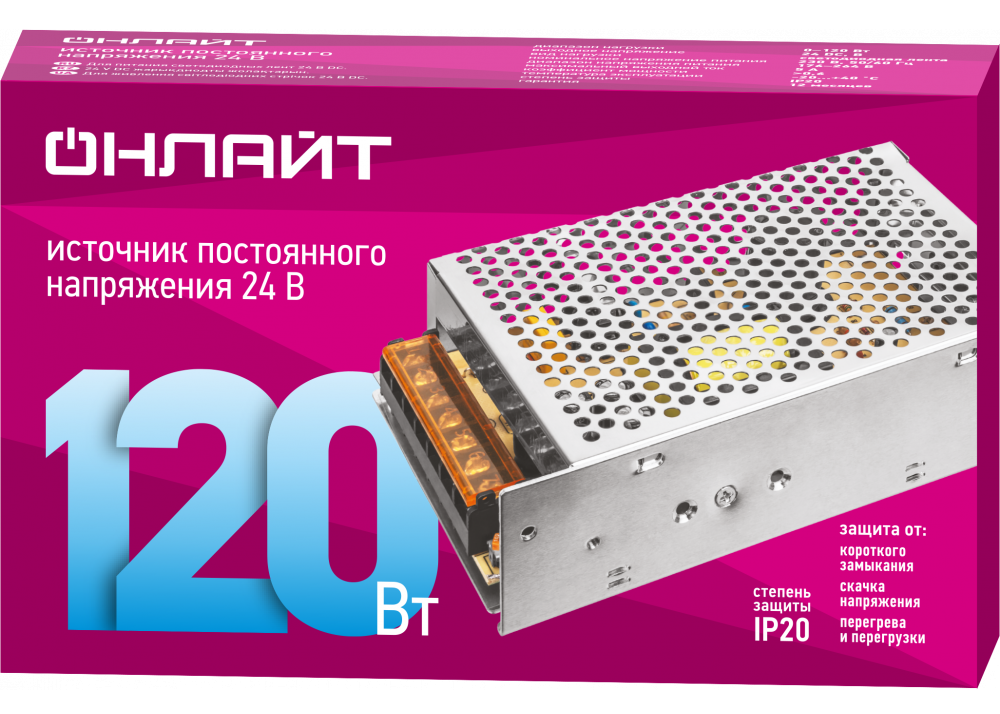 Драйвер для светодиодных светильников ОНЛАЙТ OD-P120-IP20-24V выделяется своими техническими характеристиками:
