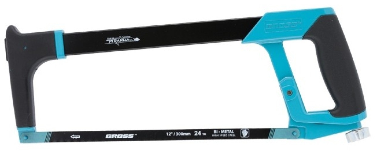 Ножовка по металлу GROSS / Гросс PIRANHA с обрезиненная рукояткой, из алюминиевого сплава, 300мм / ручной инструмент