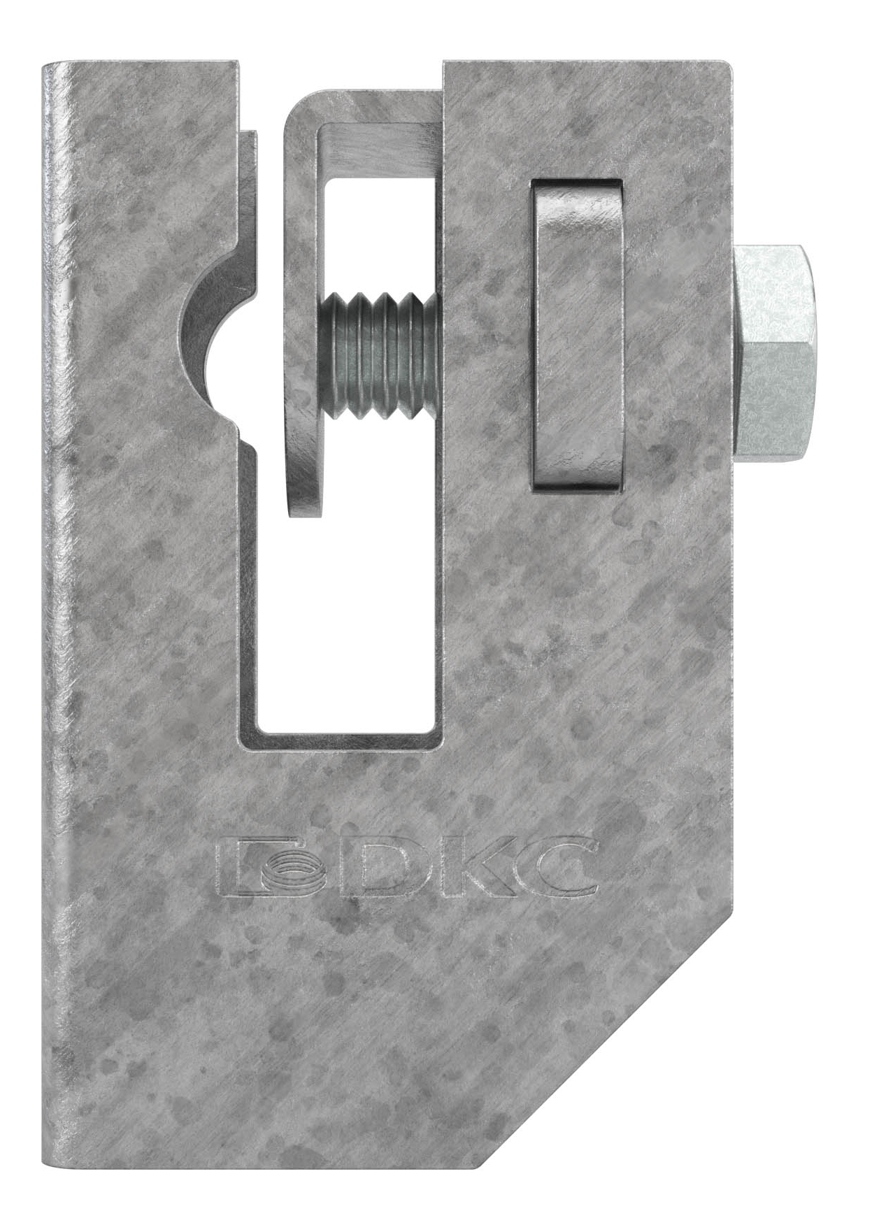 Конструкция держателя для полосы DKC из оцинкованной стали рассчитана на интенсивные эксплуатационные нагрузки. Размеры 6,5×4.7×3.1 см и способность работать с материалом до 60 мм обеспечивают универсальность применения.