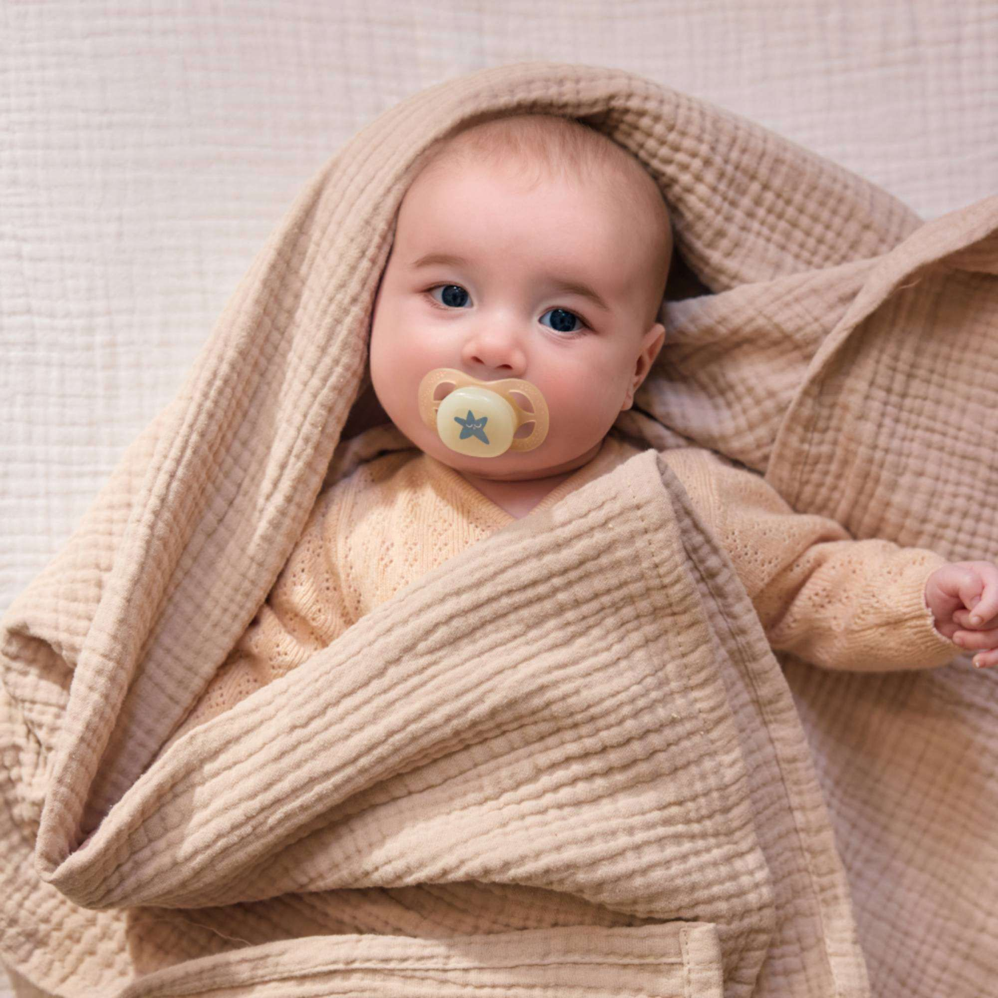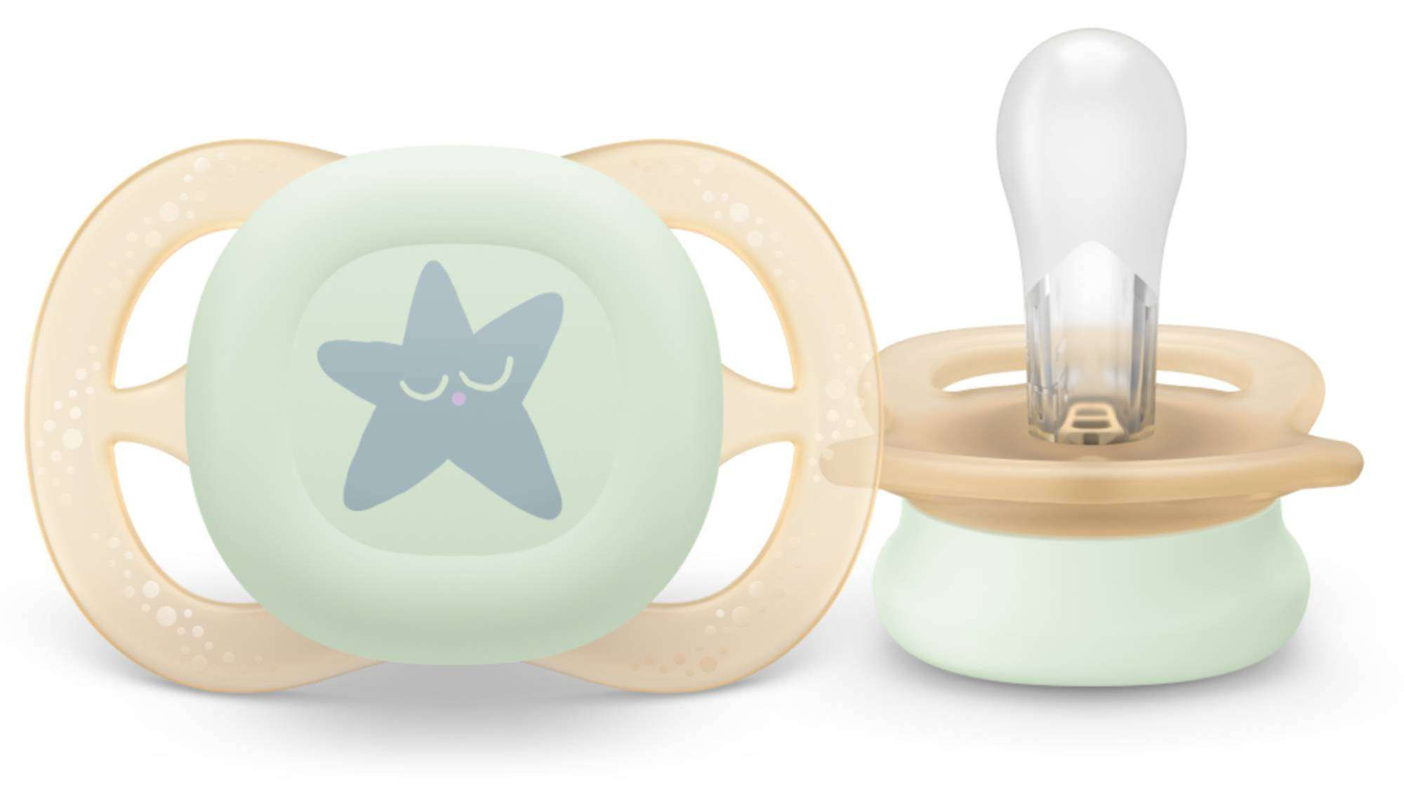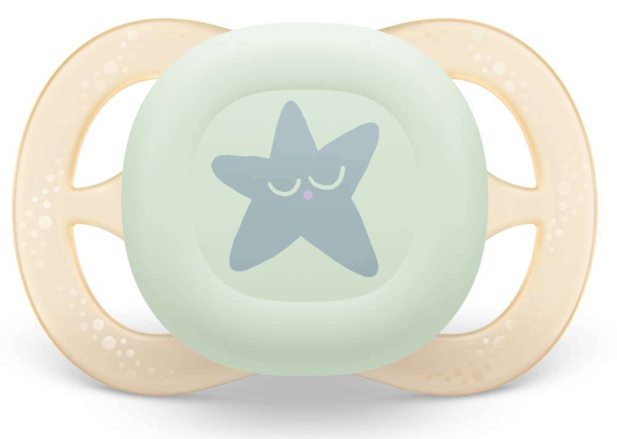 Компактная и легкая соска-пустышка Philips Avent ultra start Night SCF076/05 успокаивает малышей уже с первых дней жизни. На пустышке есть светящаяся в темноте кнопка, которая позволяет найти пустышку при выключенном свете. Свечение в темноте происходит за счет безопасного флуоресцентного компонента.