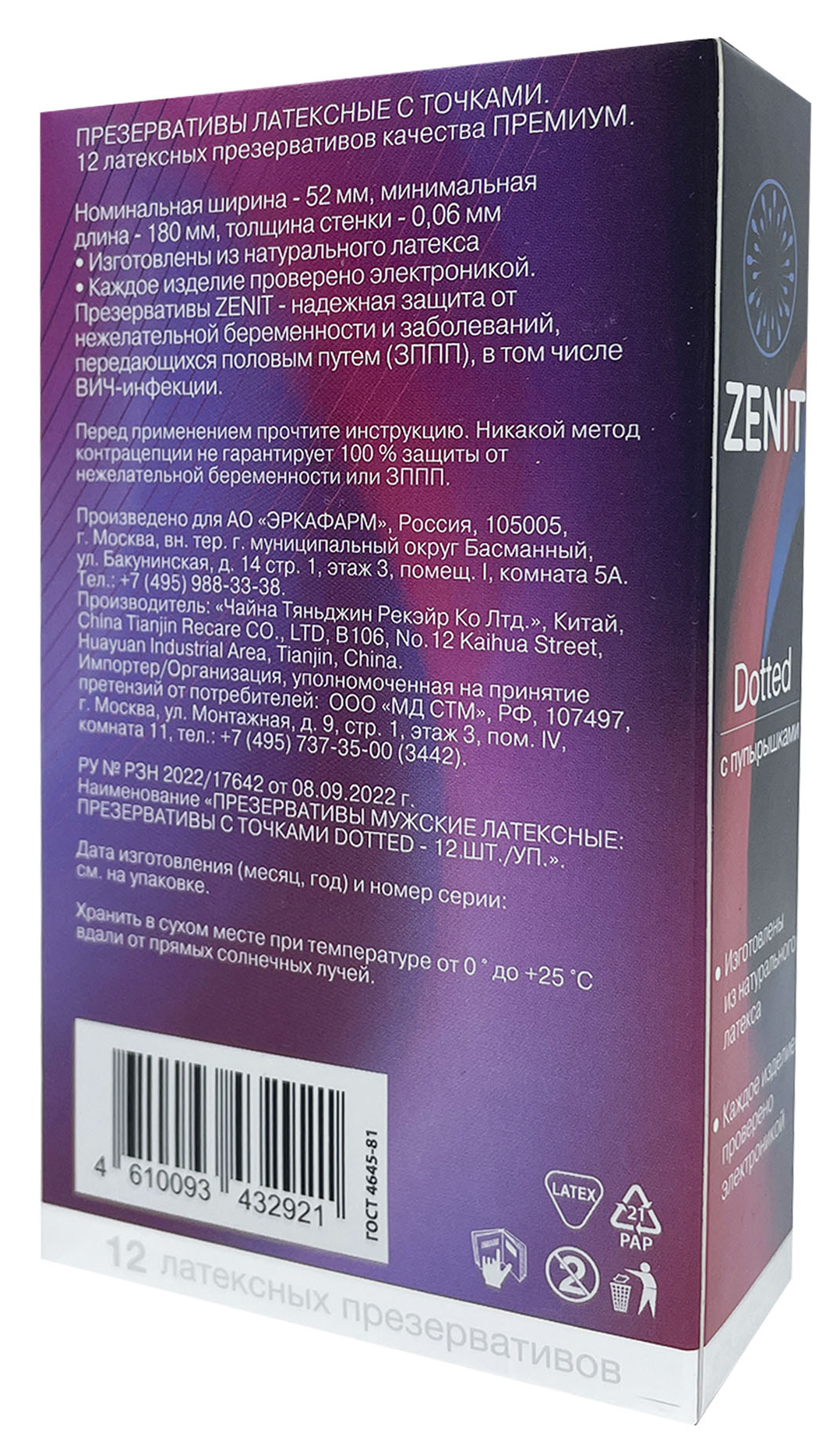 С презервативами Zenit вы можете свободно отдаться взаимной страсти и смело экспериментировать, ведь ваше здоровье находится под надёжной защитой. Классические презервативы на внешней стороне покрыты пупырышками.