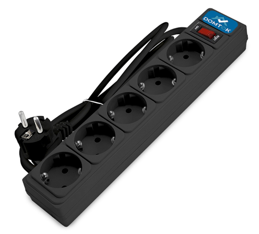 Сетевой фильтр DOMTOK / Домток с заземлением и выключателем, 10А 1.8 метра, 2200Вт, 5 гнезд, черный, 2537 / удлинитель