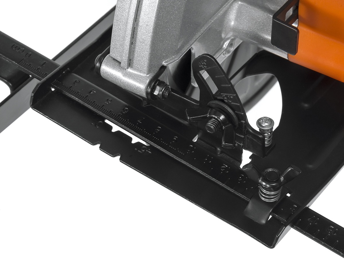 Имеет регулировку глубины пиления, регулировку угла скоса кромки от 0 до 45°, которые не требуют применения ключа и прочих инструментов.
