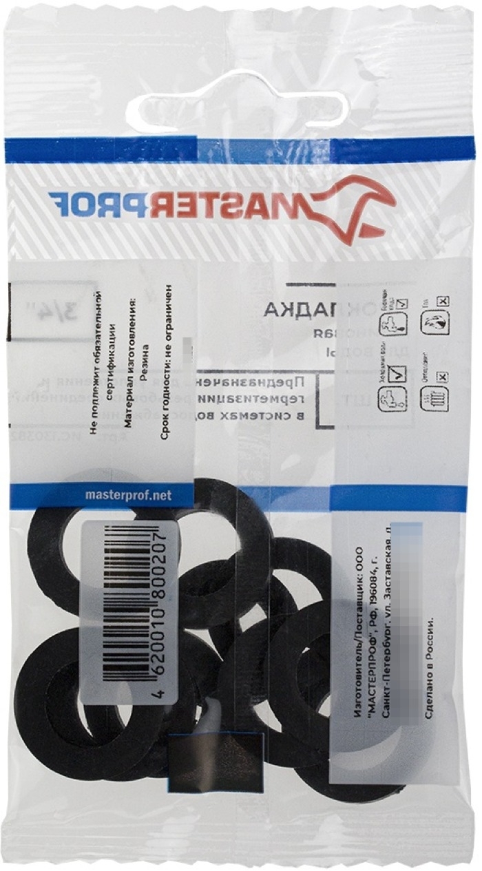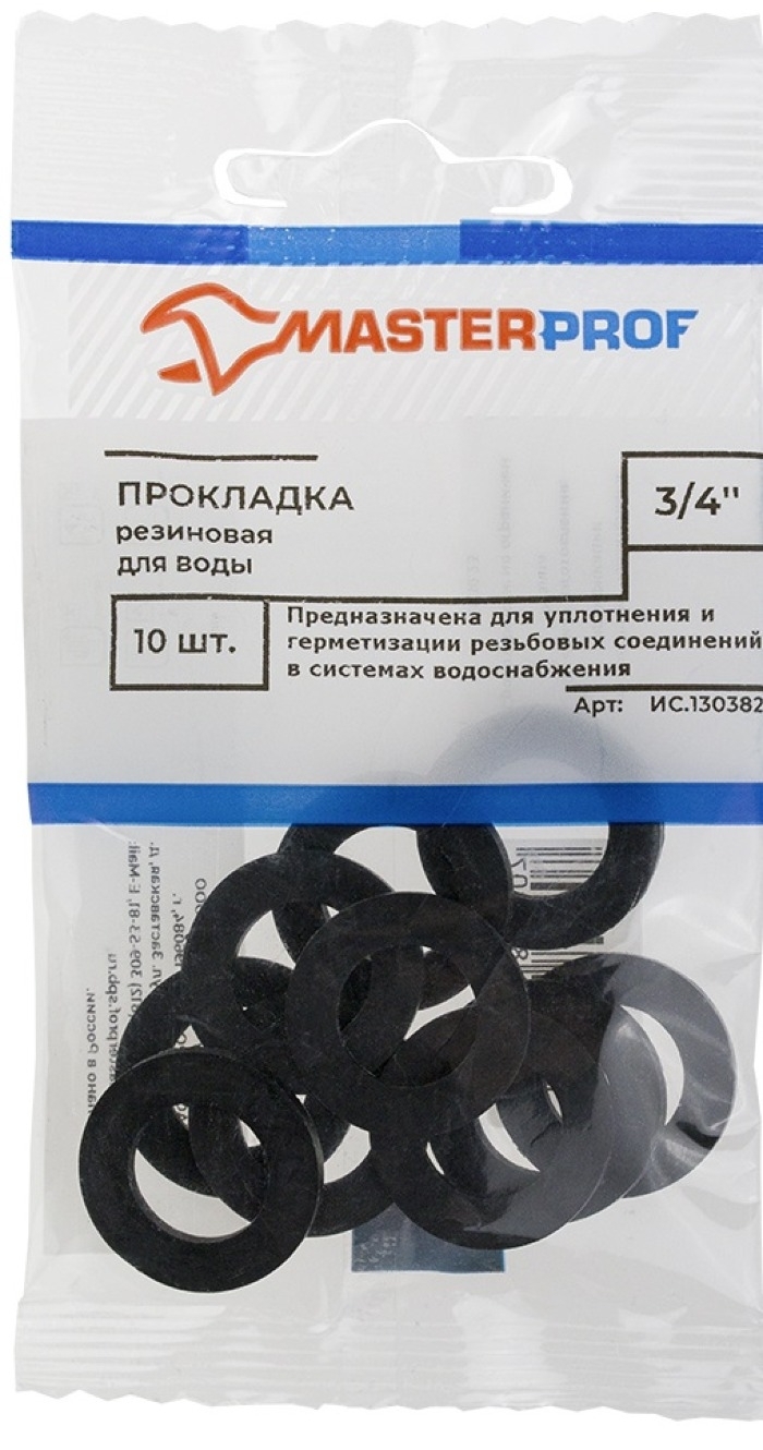 - Прокладка сантехническая MasterProf для герметизации резьбовых соединений, из резины, черная, диаметр 3/4", 10шт. - 1 упаковка