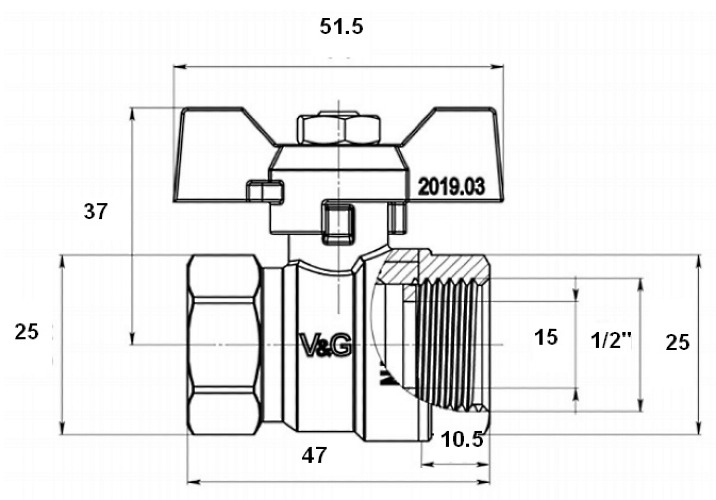 Кран шаровый V&G BхB Optima (ручка-бабочка) 1/2" VG-102101(Т.1/28). Применяется в качестве запорной арматуры в трубопроводных системах (водопроводных, хозяйственно-питьевых, отопительных), транспортирующих любые среды, не агрессивные к материалам изделия.