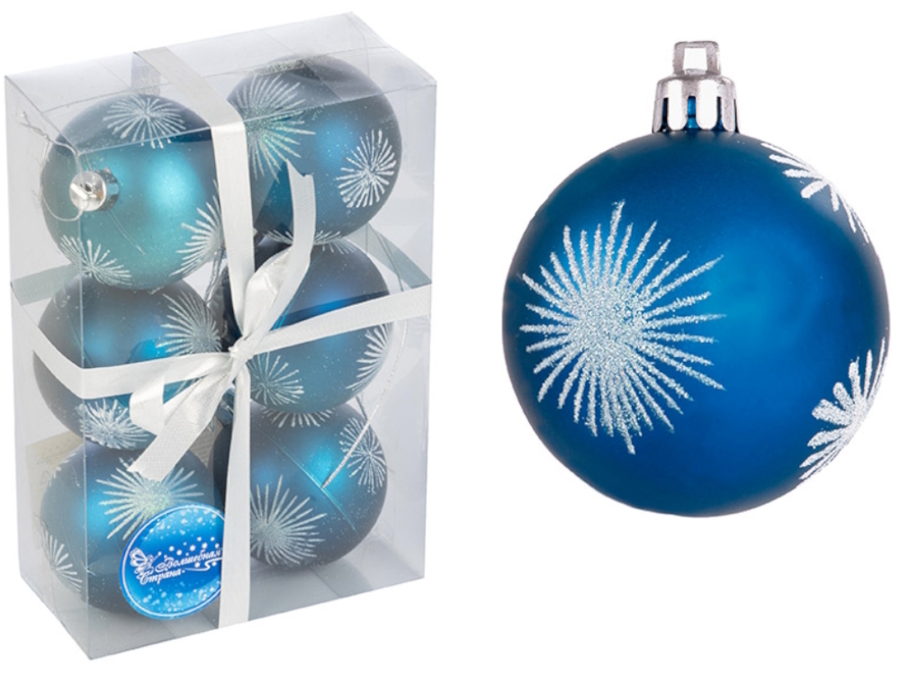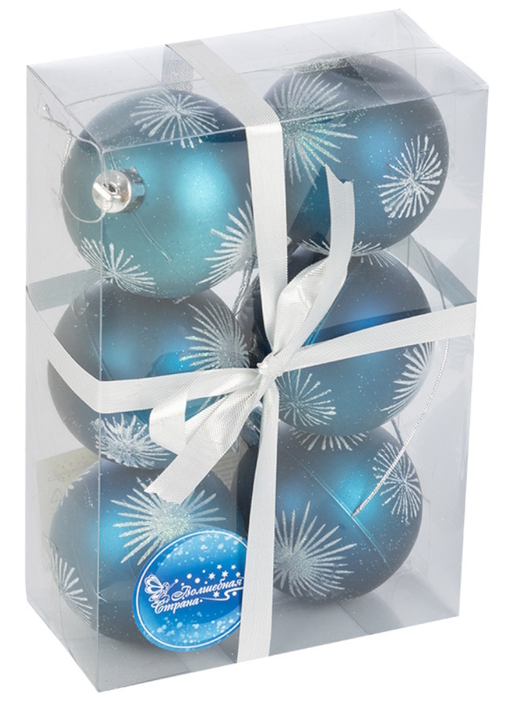 Елочные шары Волшебная страна PBD6-6-054-B с рисунком, пластиковые, синие, диаметр 6см, 6шт. в упаковке / товары для праздников