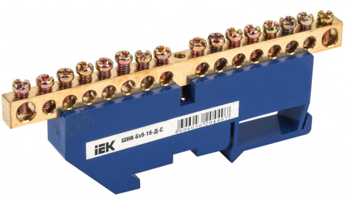 Необходимо подсоединить рабочие и защитные провода в щитовом оборудовании? Шина нулевая IEK ШНИ-6×9-16-Д-С поможет решить такую задачу.