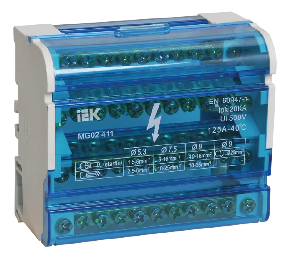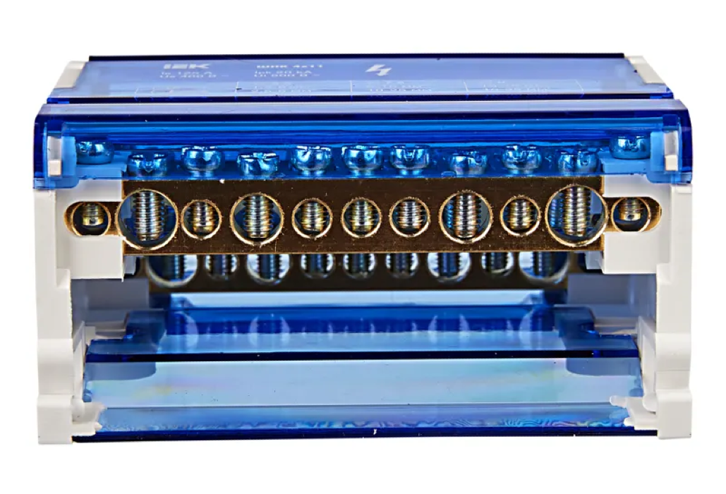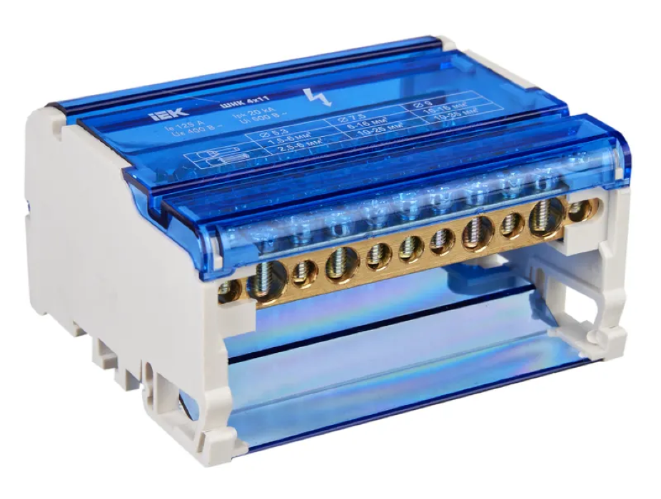- Шина IEK ШНК 4х11 3L+PEN, нулевая на DIN-рейку в корпусе (кросс-модуль), латунь, 87х100х50мм, 125А, YND10-4-11-125 - 1шт.