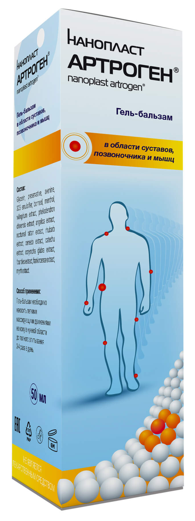 Нанопласт Артроген Гель-бальзам для тела с растительными экстрактами, 50мл / уходовая косметика