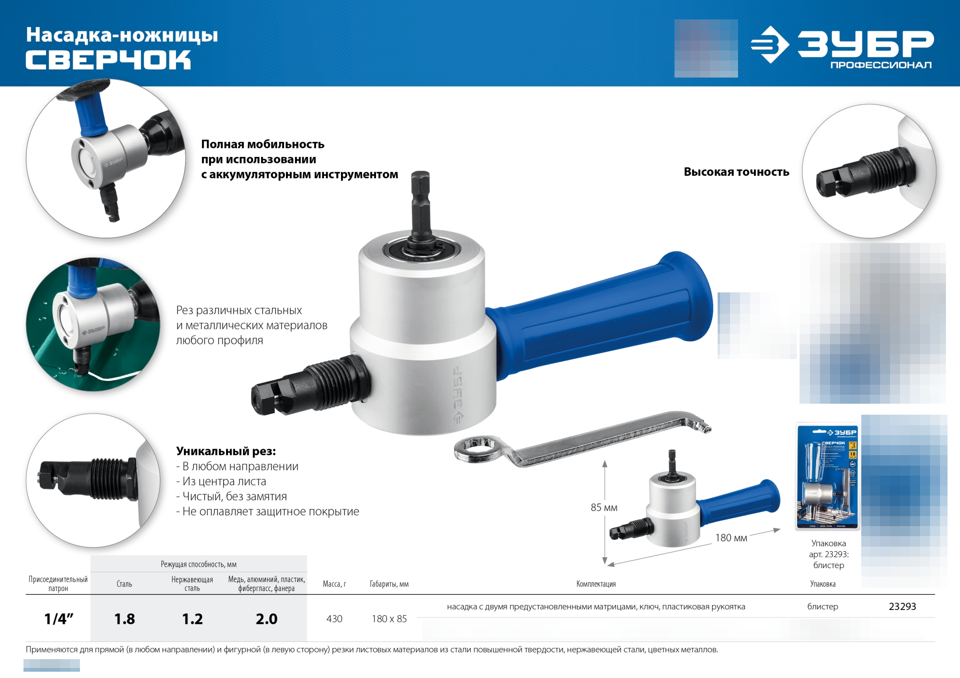 Не тратьте время на некачественный инструмент. Выберите насадку-ножницы для резки металла Зубр Сверчок — профессиональный результат во всех задачах!