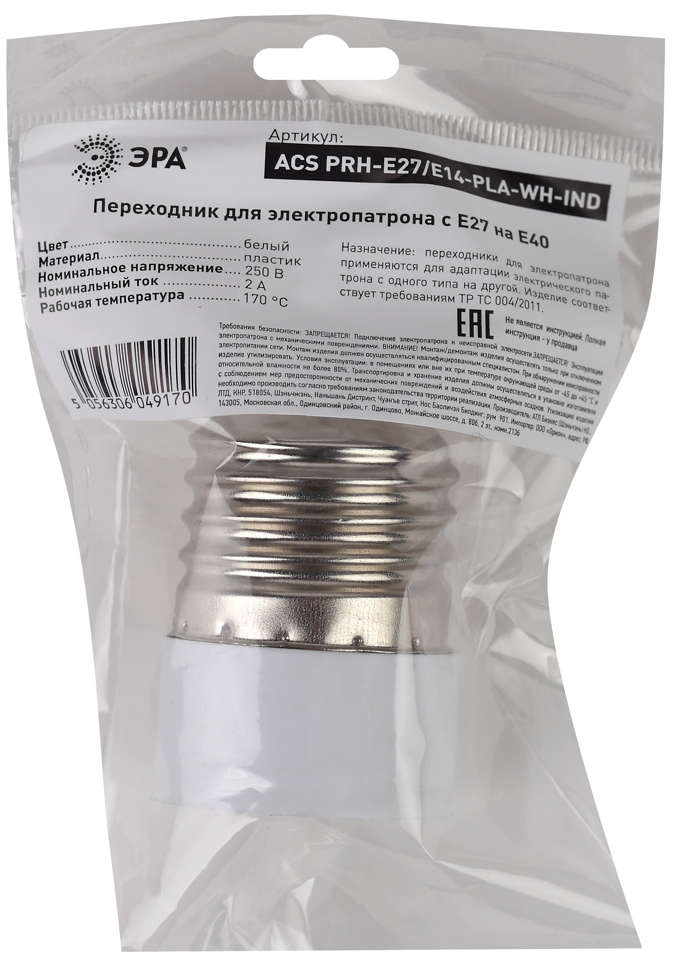 Патрон переходник ЭРА предназначен для надёжного присоединения ламп накаливания, энергосберегающих и светодиодных ламп к светильникам с патроном отличным от цоколя ламп.