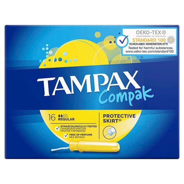 Компактные тампоны гигиенические Tampax Compak Regular обеспечивают надежную защиту при интенсивных менструальных выделениях. Тампоны гигиенические с аппликатором Tampax Compak имеют гладкий и компактный пластмассовый аппликатор и закругленный кончик для комфортного введения. Впитывающие желобки направляют жидкость внутрь тампона, а защитная юбочка помогает предотвратить протекания, избавляя от беспокойства во время менструации.