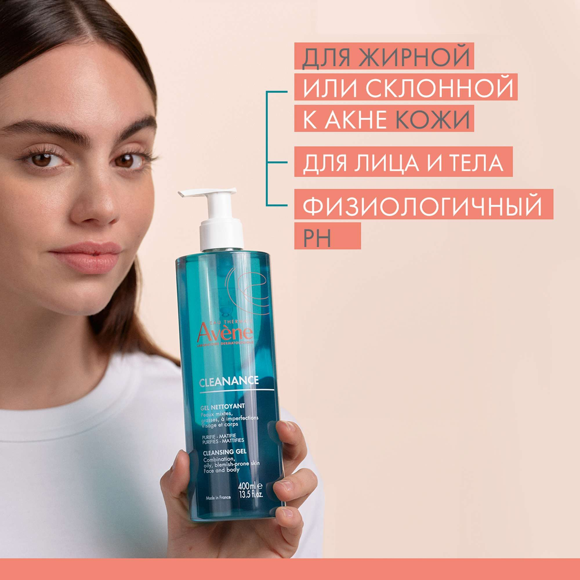 Avene / Авен Гель для умывания лица Cleanance очищающий матирующий для жирной и проблемной кожи, с термальной водой, 400мл / уходовая косметика