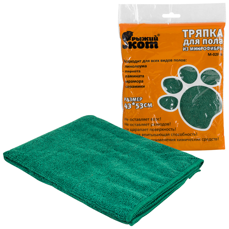 Тряпка для пола Рыжий Кот M-02F-М для ежедневной влажной и сухой уборки, из микрофибры, 43×53см / хозяйственные товары