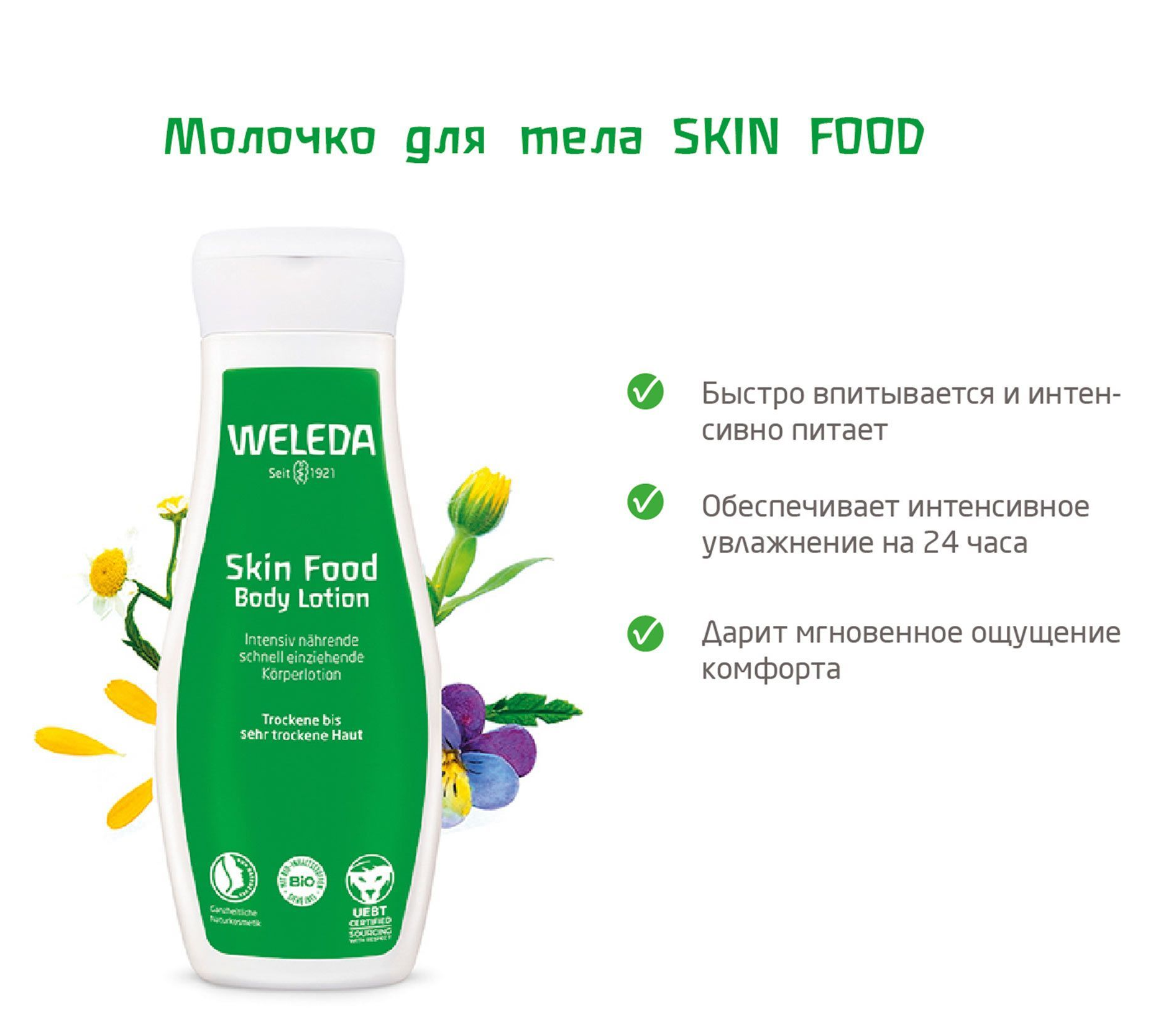 Weleda / Веледа Skin food Молочко для тела интенсивное питание, с растительными экстрактами, для сухой кожи, 200мл / уходовая косметика
