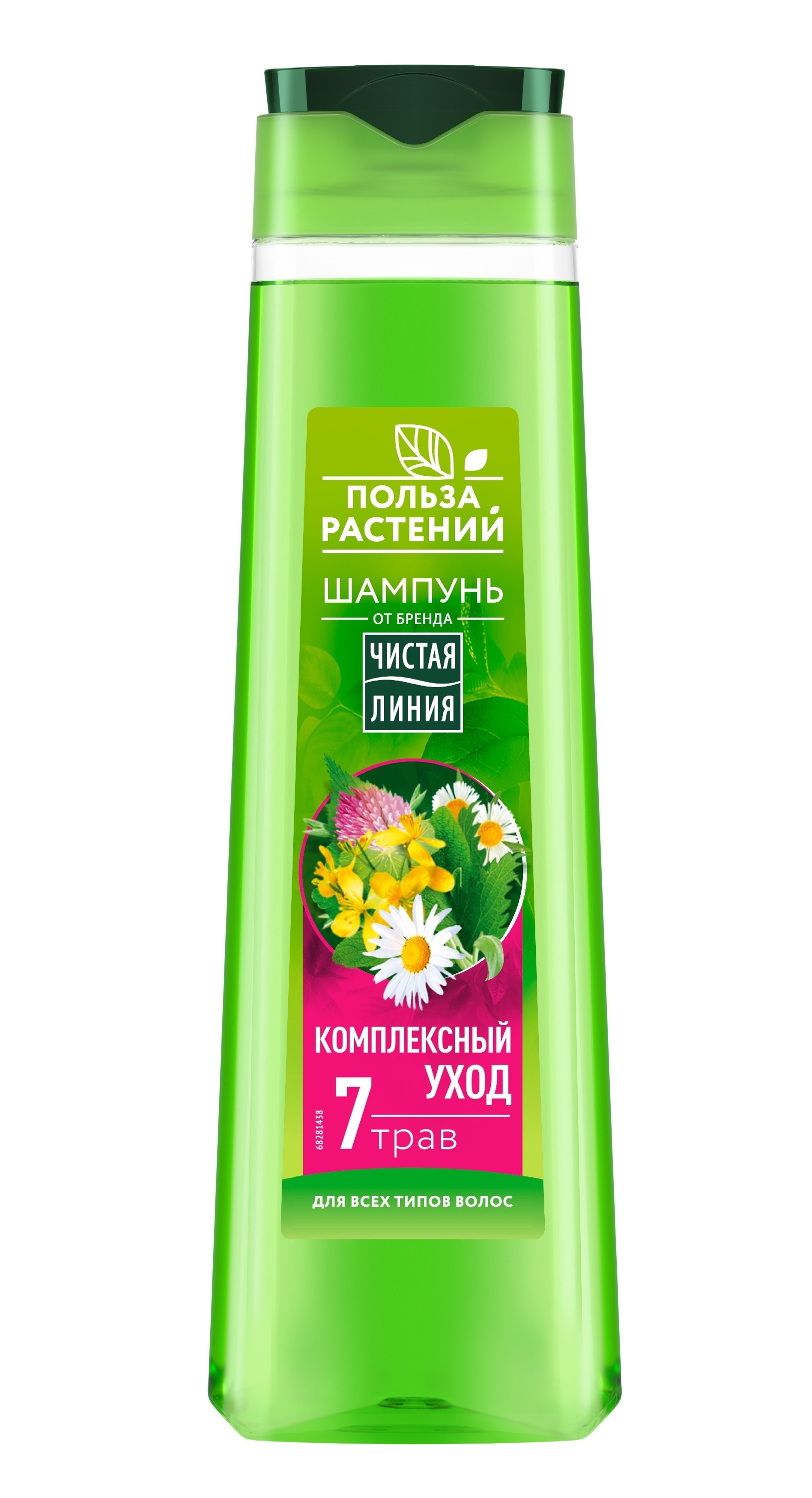 Чистая Линия Шампунь женский Комплексный уход 7 трав для всех типов волос 385мл