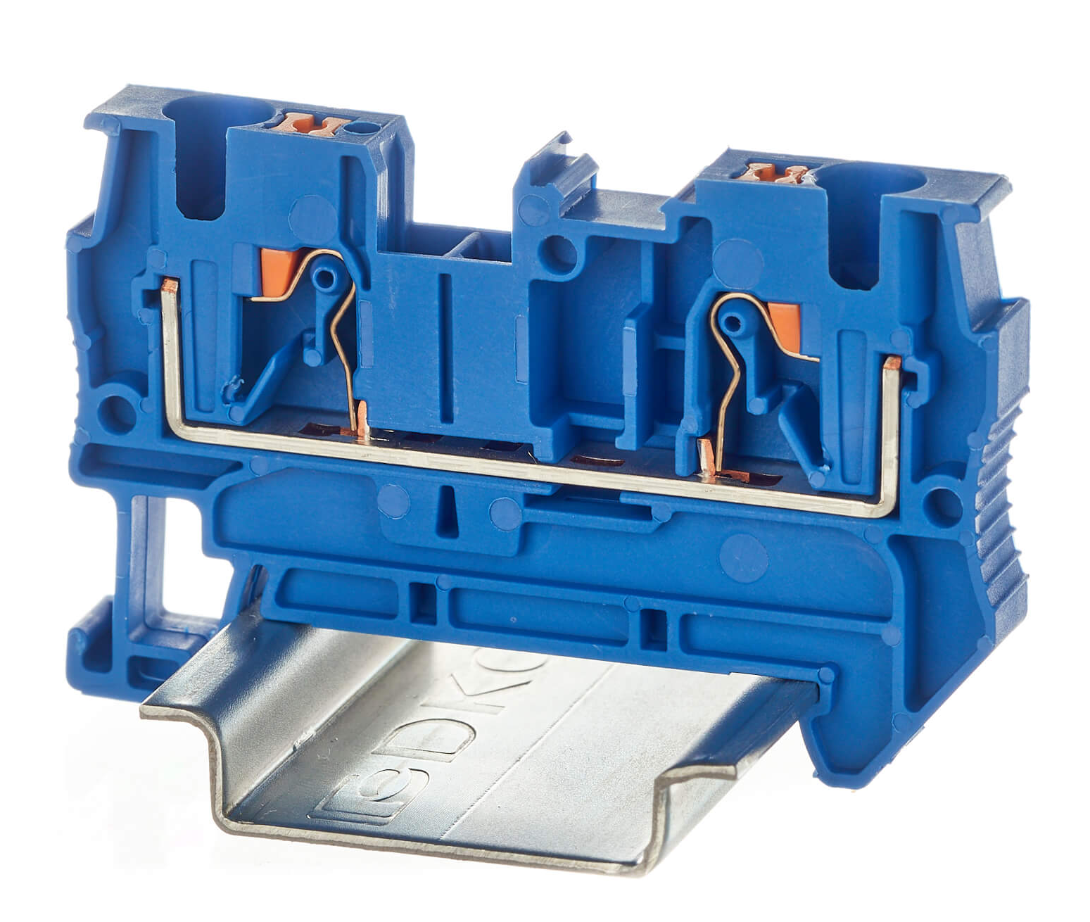 - Клемма для проводов DKC проходная push-in, 2 контакта, корпус огнеупорный пластик, синяя, 36.8х55.9х6.2мм - 1шт.