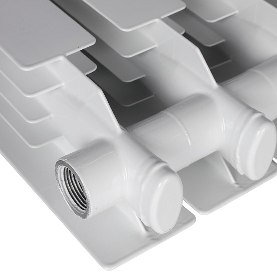 Радиаторы Stout Vega собираются из отдельных секций, которые изготовлены из качественного первичного алюминиевого сплава методом литья под давлением. Секция радиатора представляет собой единый монолит из двух горизонтальных коллекторов и связывающего их оребрения, внутри которого проходит вертикальный канал овального сечения.