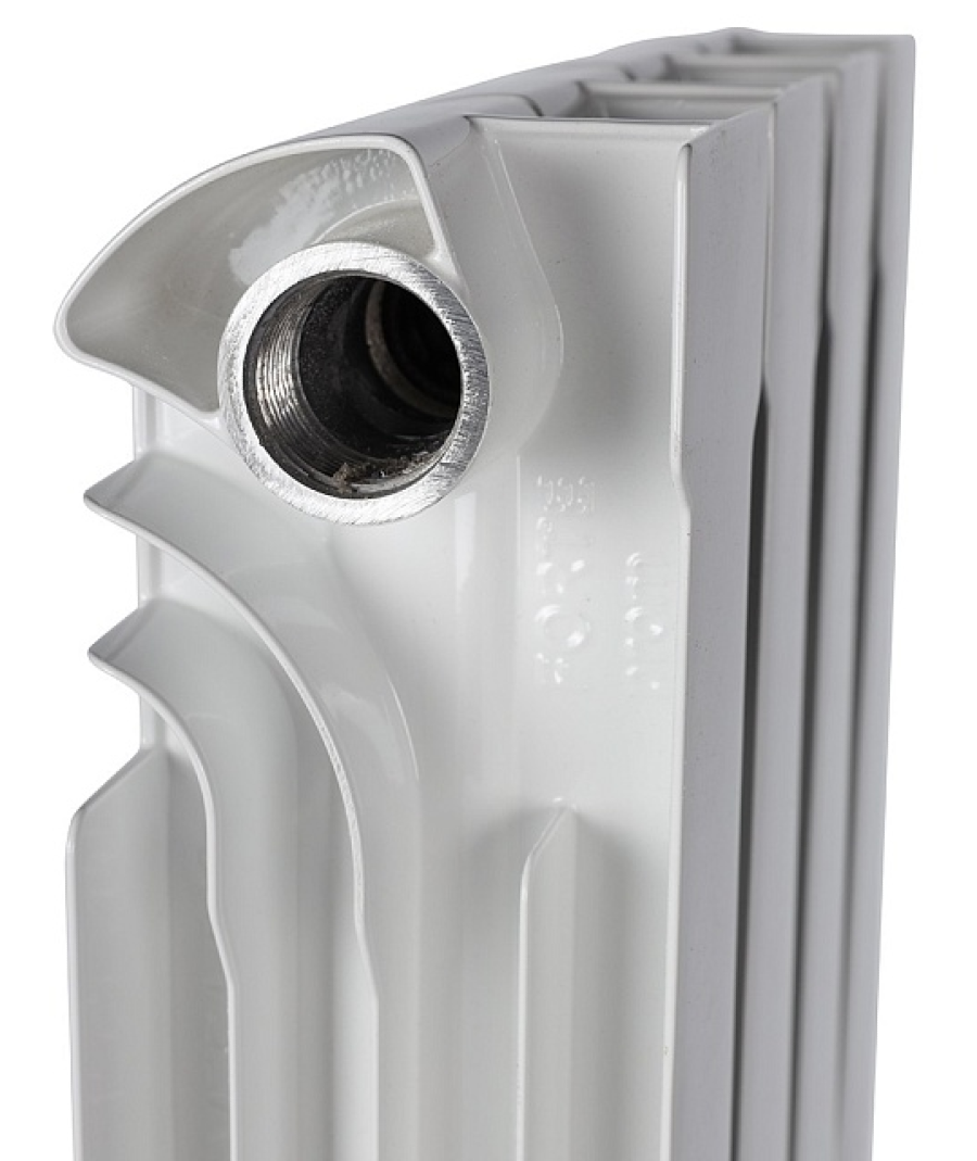 Главное отличие от прочих алюминиевых радиаторов заключается в конструкции секции. Технологическое отверстие в нижней части каждой секции радиатора герметизируют без использования сварки. Для этого используют мембрану из EPDM и специальную заглушку. Мембрана предотвращает контакт теплоносителя с данной частью радиатора и обеспечивает повышение коррозионной стойкости соединения и надежности отопительного прибора в целом.