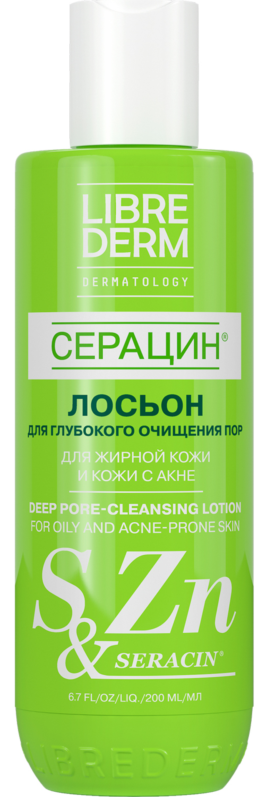 Librederm Серацин для жирной кожи с акне Лосьон для лица глубоко очищающий эффективно борется с прыщами, очищает и сужает поры. Тщательно подобранные компоненты регулируют липидный баланс и устраняют жирный блеск.