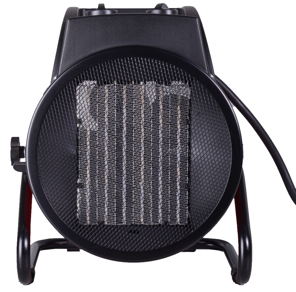 Электрическая теплопушка отличается экологичностью, не выделяет выхлопных газов и токсинов в процессе эксплуатации. Для экономичного расхода электроэнергии предусмотрены 3 режима работы. При нагреве воздуха интенсивность теплового потока регулируется мощностью 3 кВт и 5 кВт. Термостат с механическим управлением позволяет поддерживать выбранную температуру. Угол наклона теплопушки можно изменять. Автоматическая система термозащиты отключит прибор в случае перегрева.