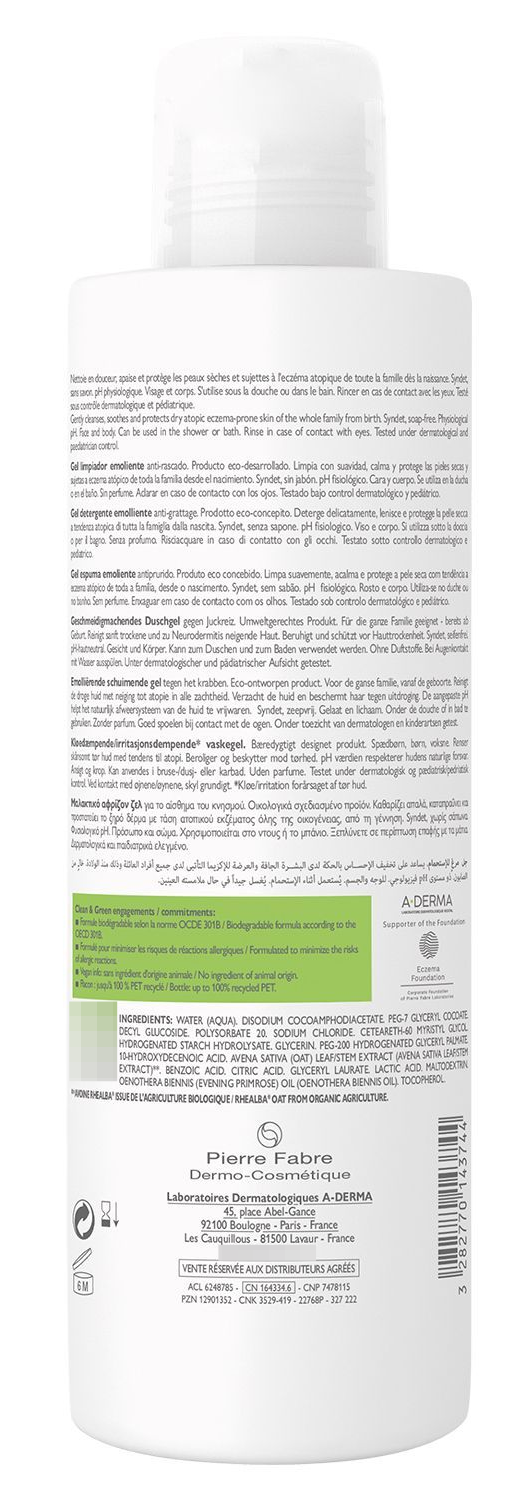 A-Derma / А-Дерма Гель для душа Exomega Control смягчающий пенящийся для сухой кожи с экстрактом ростков овса Реальба, 500мл / гигиена и уход
