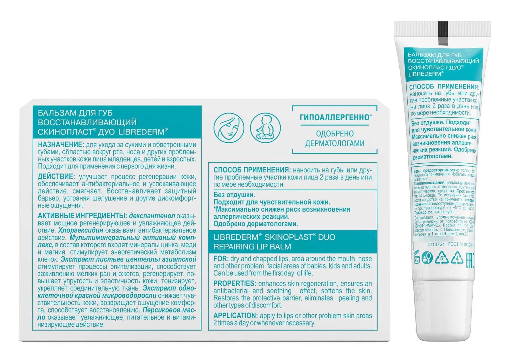 Питательный бальзам для губ с пантенолом Librederm Skinoplast Duo — это полностью натуральный увлажняющий продукт. Он защищает сухие, потрескавшиеся или обветренные губы. Смягчающие свойства делают бальзам для губ Librederm идеальным увлажняющим средством.