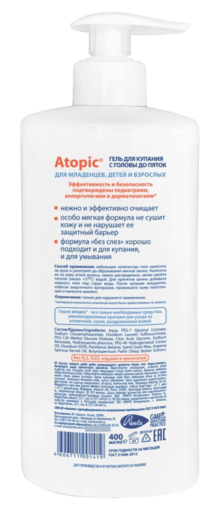 Средство для купания детское Atopic / Атопик гель с головы до пяток, с пантенолом, возраст 1 месяц+, 400мл