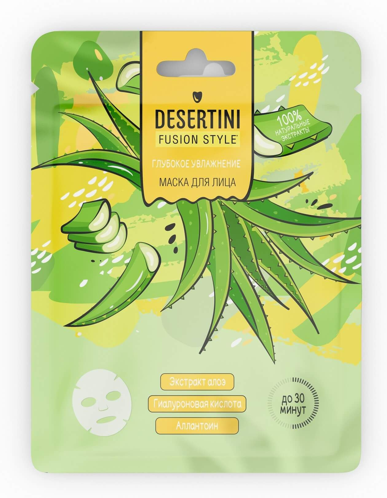 Маска для лица тканевая Desertini Глубокое увлажнение восстанавливает здоровый сияющий вид кожи, глубоко питает и увлажняет ее изнутри.