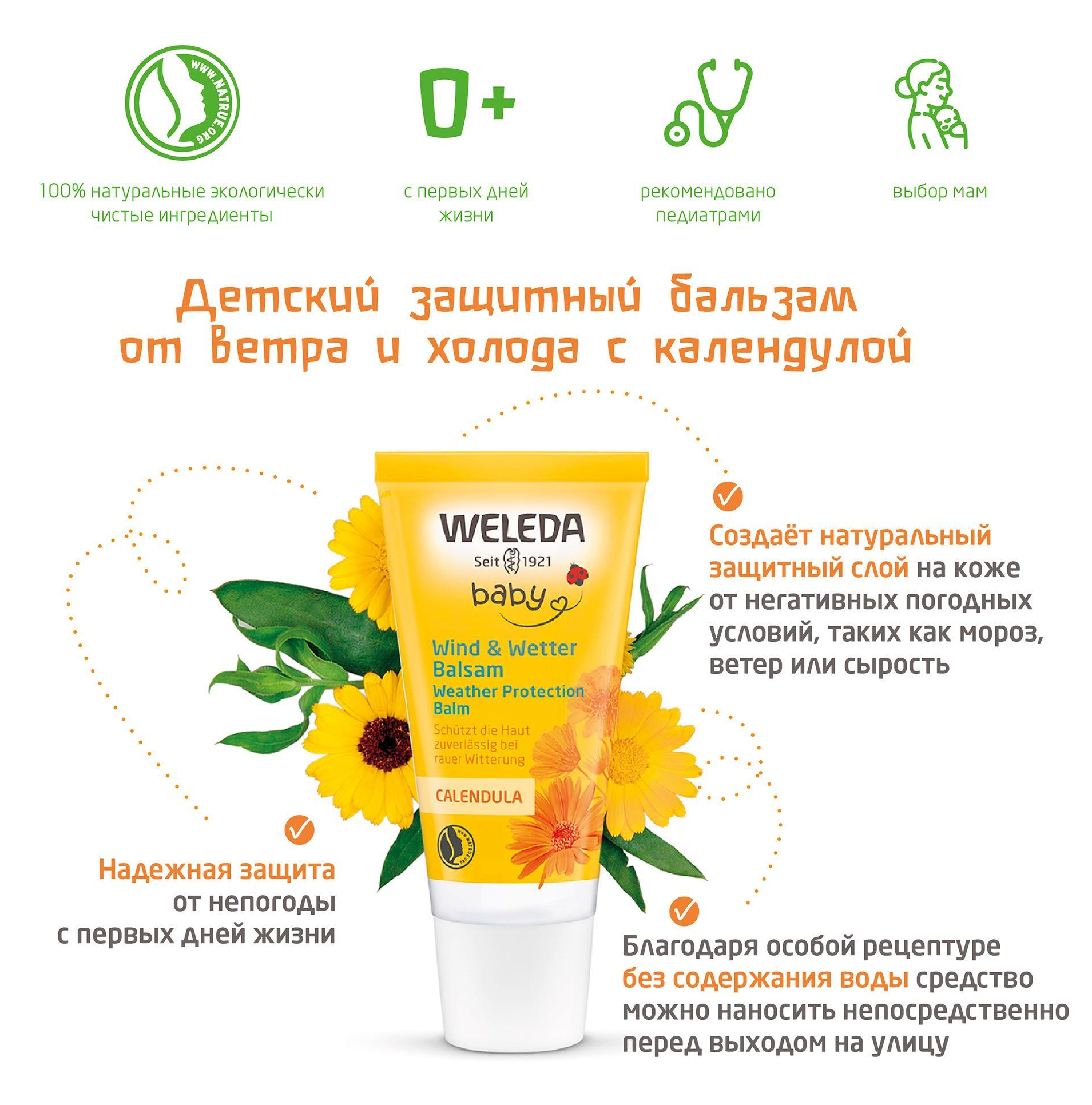 Weleda / Веледа CALENDULA Бальзам для лица и тела от ветра и холода защитный детский с ланолином и пчелиным воском, 30мл / уходовая косметика
