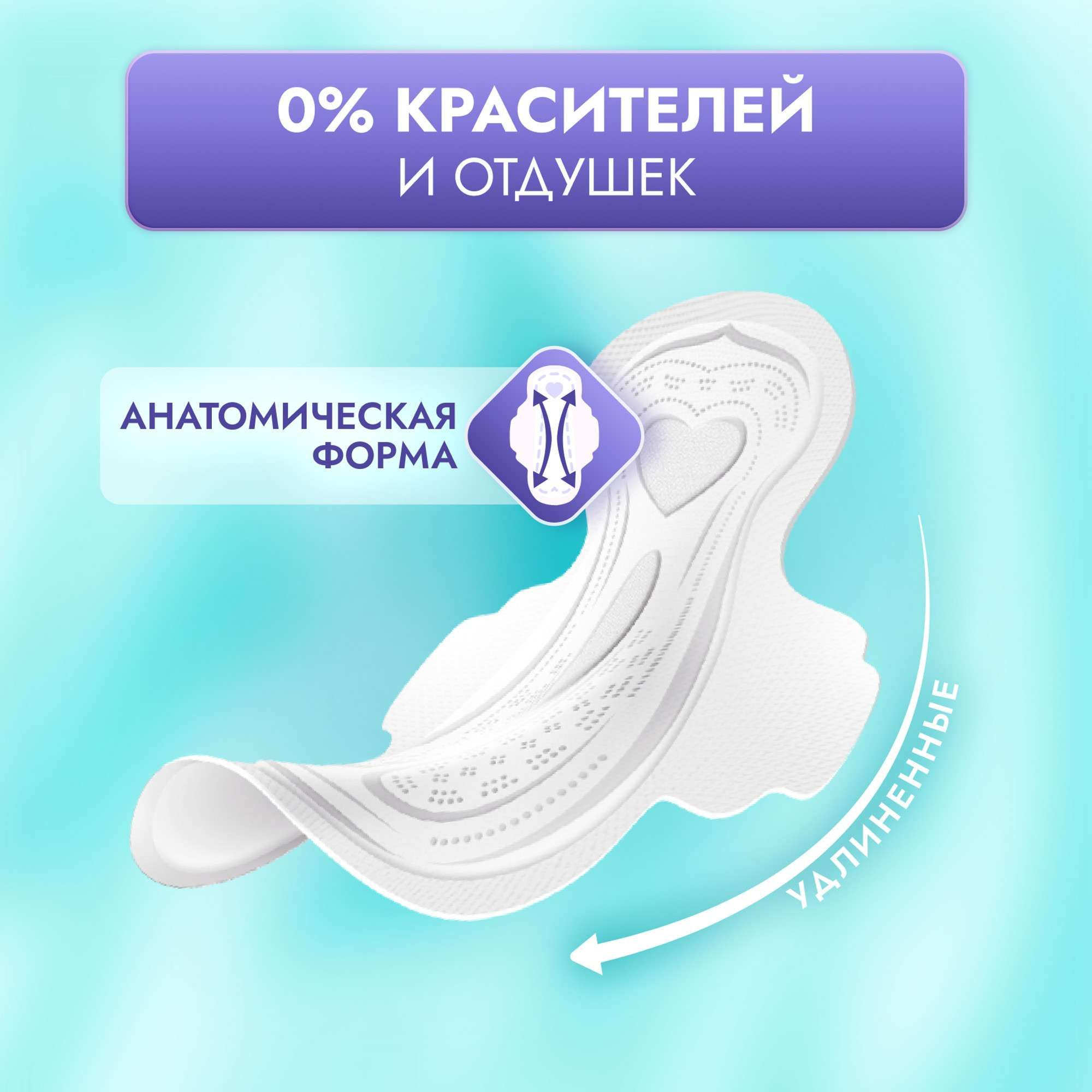 У гигиенических прокладок улучшенная система быстрого впитывания: жидкость впитывается и распределяется по нижнему слою прокладки, что способствует сухости и комфорту. Новая эстетичная форма прокладки не сминается и не скручивается.