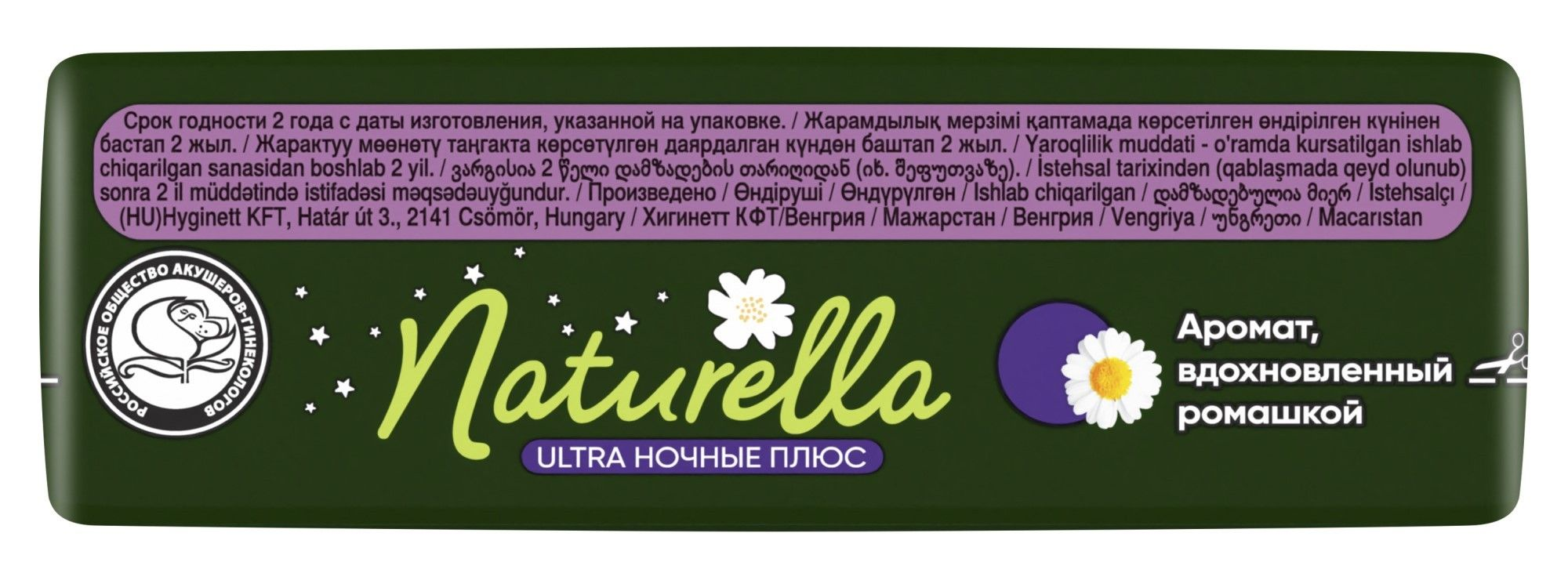 Мягкие гигиенические прокладки Naturella Ultra Night Plus (Натурелла Ультра Ночные Плюс) «Ромашка» размер 5, с крылышками, помогающими надежно фиксировать прокладку, обеспечивают защиту кожи в интимной зоне в ночное время при обильных выделениях. Содержат успокаивающий лосьон Dermacrem, который покрывает кожу тонким защитным слоем и предотвращает раздражение. Ночные прокладки 5 размера на 43% длиннее и на 27% шире сзади для дополнительной защиты в положении лежа в ночное время (по сравнению с прокладками Naturella Ultra Normal). Необычайно мягкий верхний слой прокладок имеет впитывающую систему для защиты от протеканий.